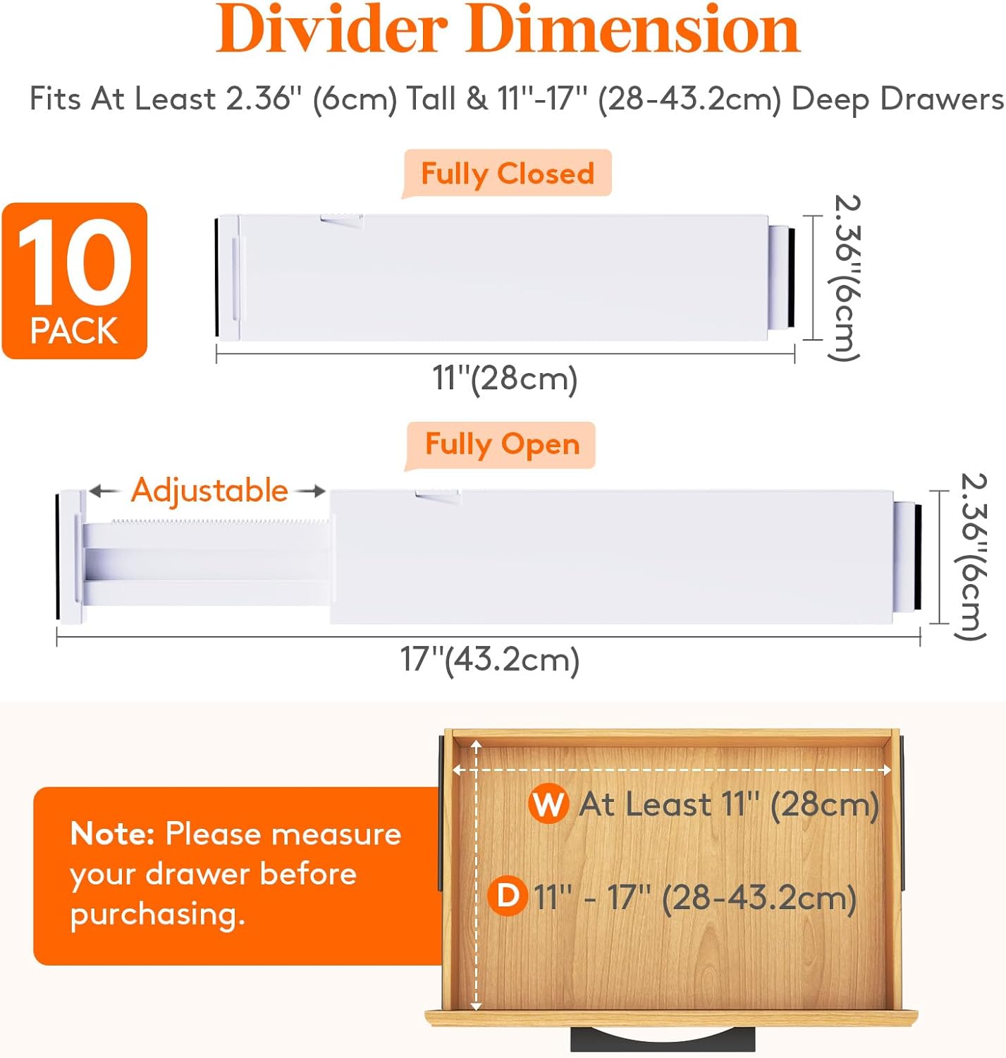 Lifewit 10 Pack Kitchen Drawer Dividers 2.36" High, 11"-17" Adjustable Drawer Organizer for Utensils/Clothes/Makeup, Plastic Expandable Separators in Dresser/Bedroom/Bathroom/Office Storage