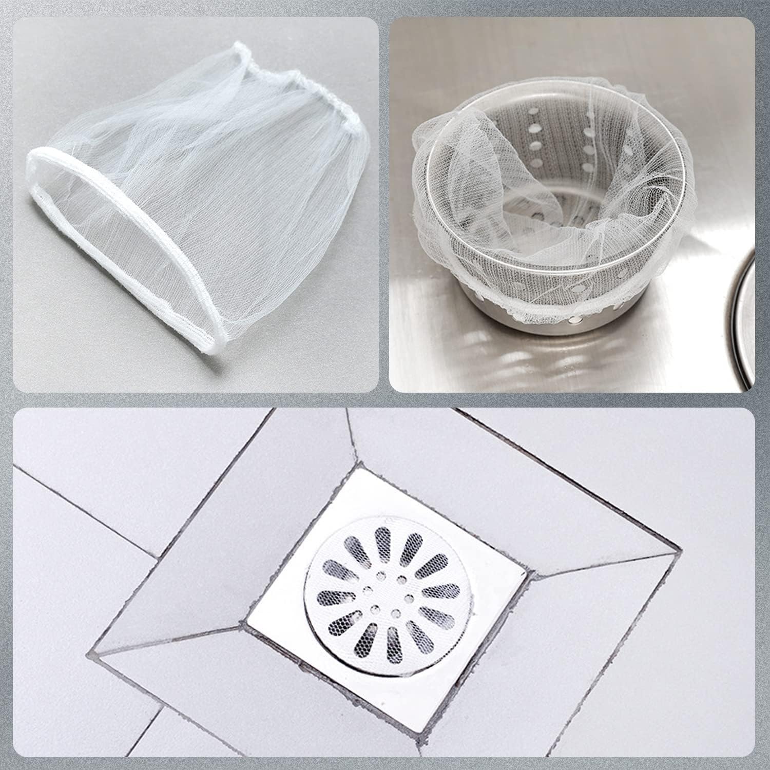 - 【High-quality Materials】The sink strainer mesh bag is made of high-quality polyester and elastic fiber, fine mesh with diameter less than 1mm, which make sure no omission in filtration. Also, it's environmentally friendly, no odor, and safe enough for everyday use, just remove the net at the end of the day and throw it away.