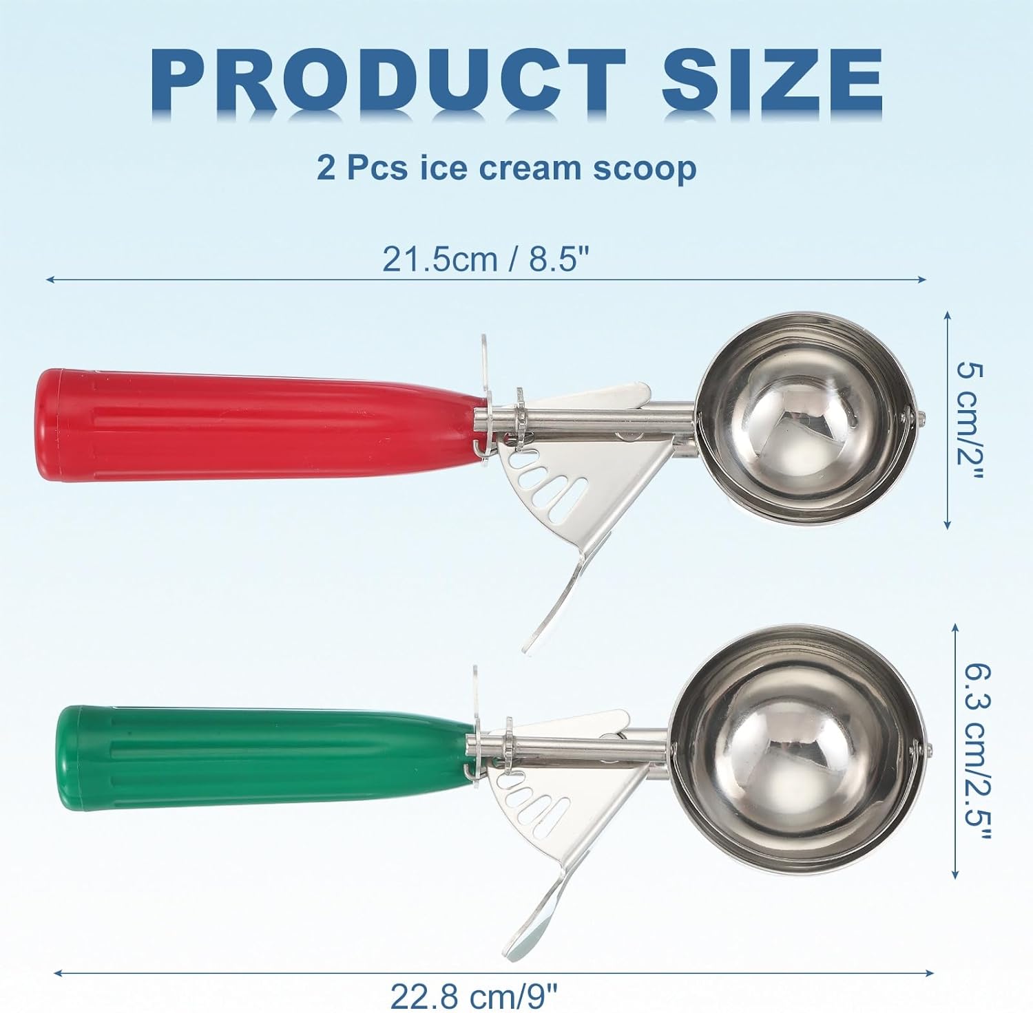 uxcell 2 Pcs Cookie Scoops, Ice Cream Scoop with Trigger for Baking Cookie Dough Rice Pudding Kitchen Gadget, Red, Green