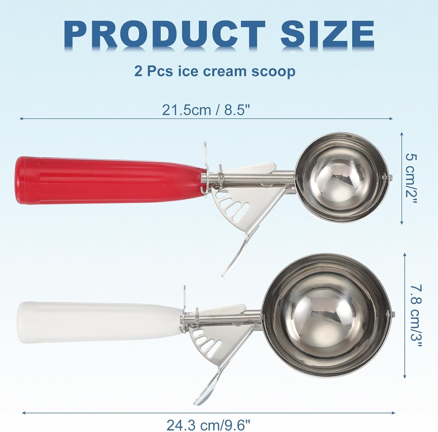 uxcell 2 Pcs Cookie Scoops, Ice Cream Scoop with Trigger for Baking Cookie Dough Rice Pudding Kitchen Gadget, Red, White
