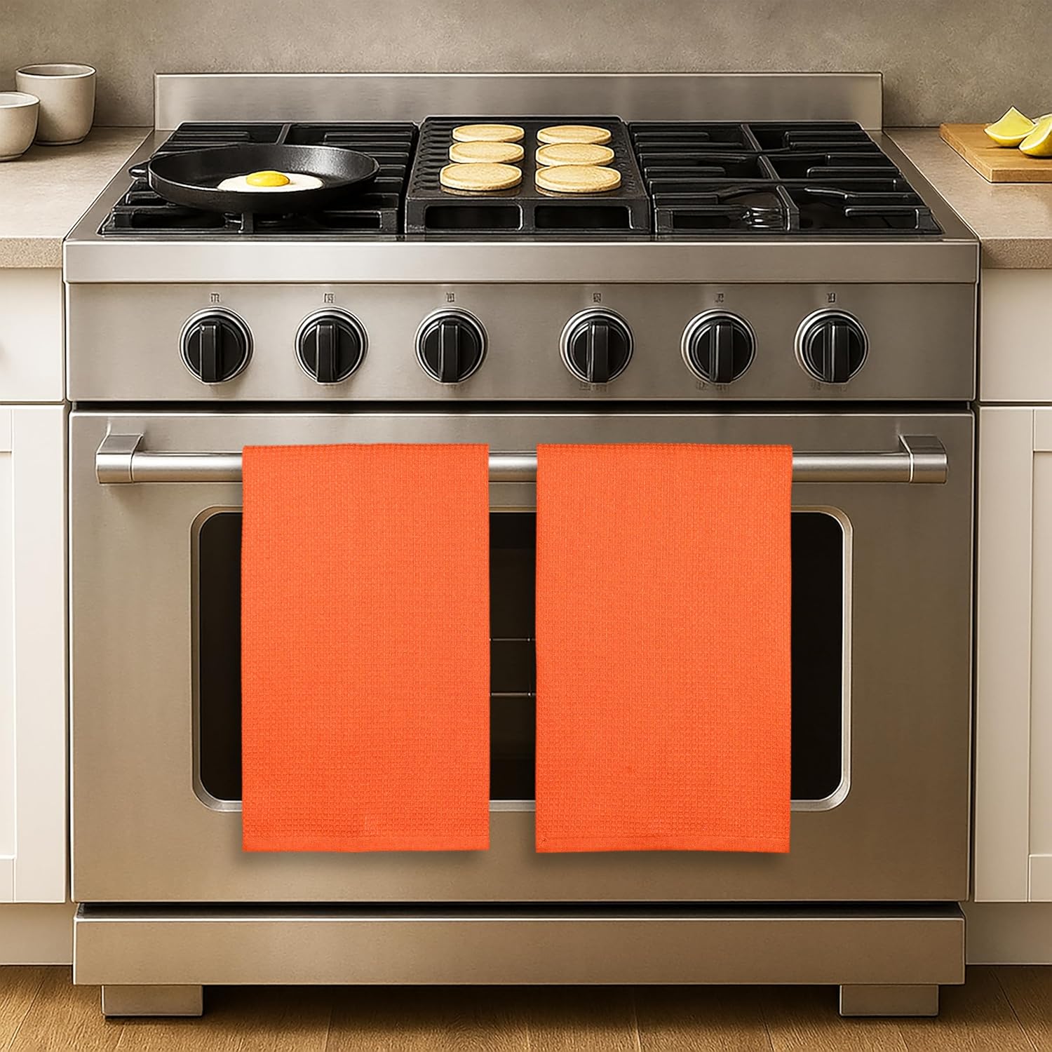 PurpleEssences Waffle Weave Kitchen Solid Dish Cloths 100% Cotton, Ultra Soft Absorbent Quick Drying Dish Towels (Orange, 15 x 25-4 Pack)