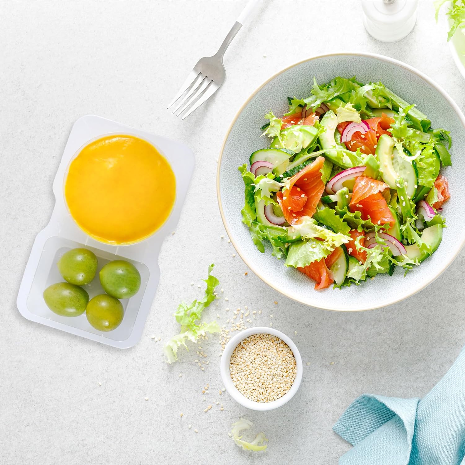 - Great for on the go: The reusable snack containers with lids can be a perfect case for road trip snacks! It can be used both for condiments as well as snacks. Just put pepperoni in the round part and little cheese cubes in the rectangular part. Perfect for small hands. The lids snap down securely and holds everything with no leaks