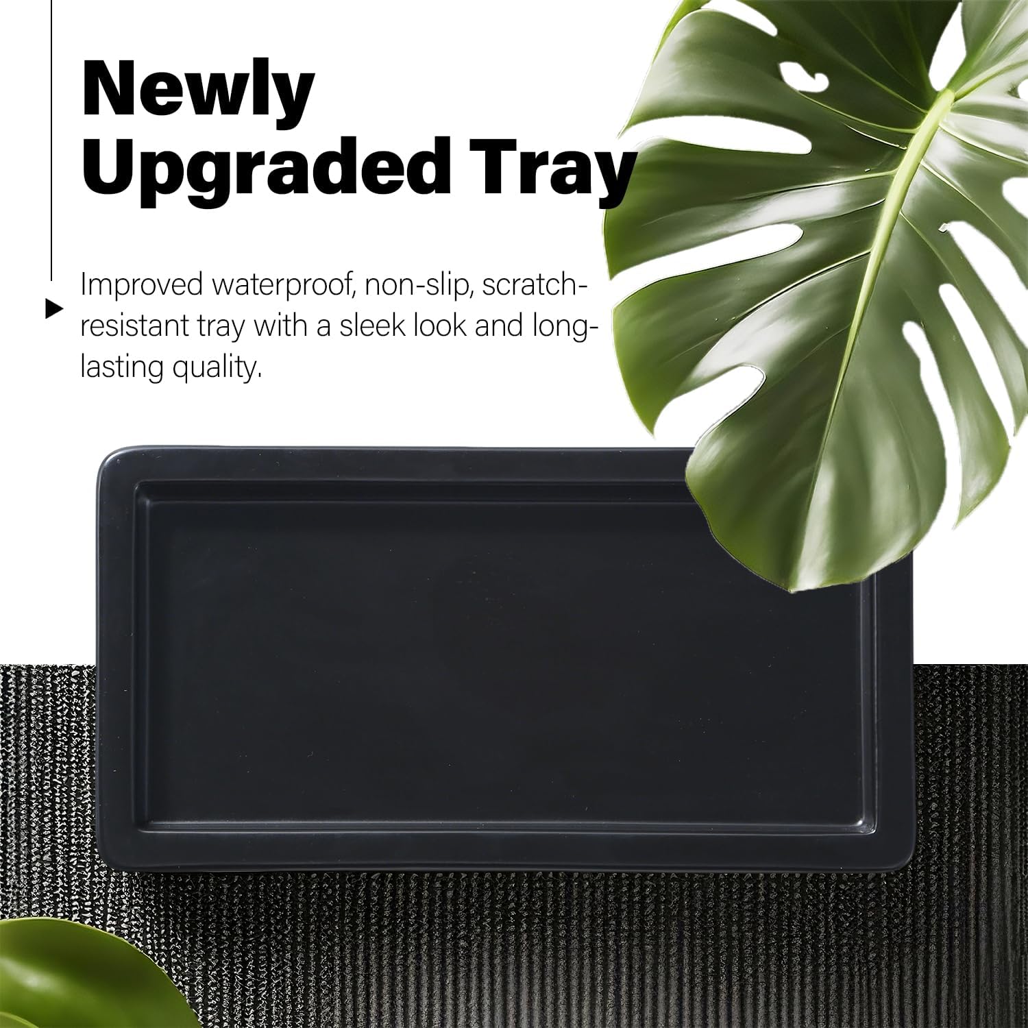 - [Thoughtful Tray] This soap and lotion dispenser set includes a handmade tray that adds an extra touch of style and convenience. The tray is designed with anti-slip pads, providing stability and preventing the lotion pump dispenser and liquid hand soap dispenser from sliding.