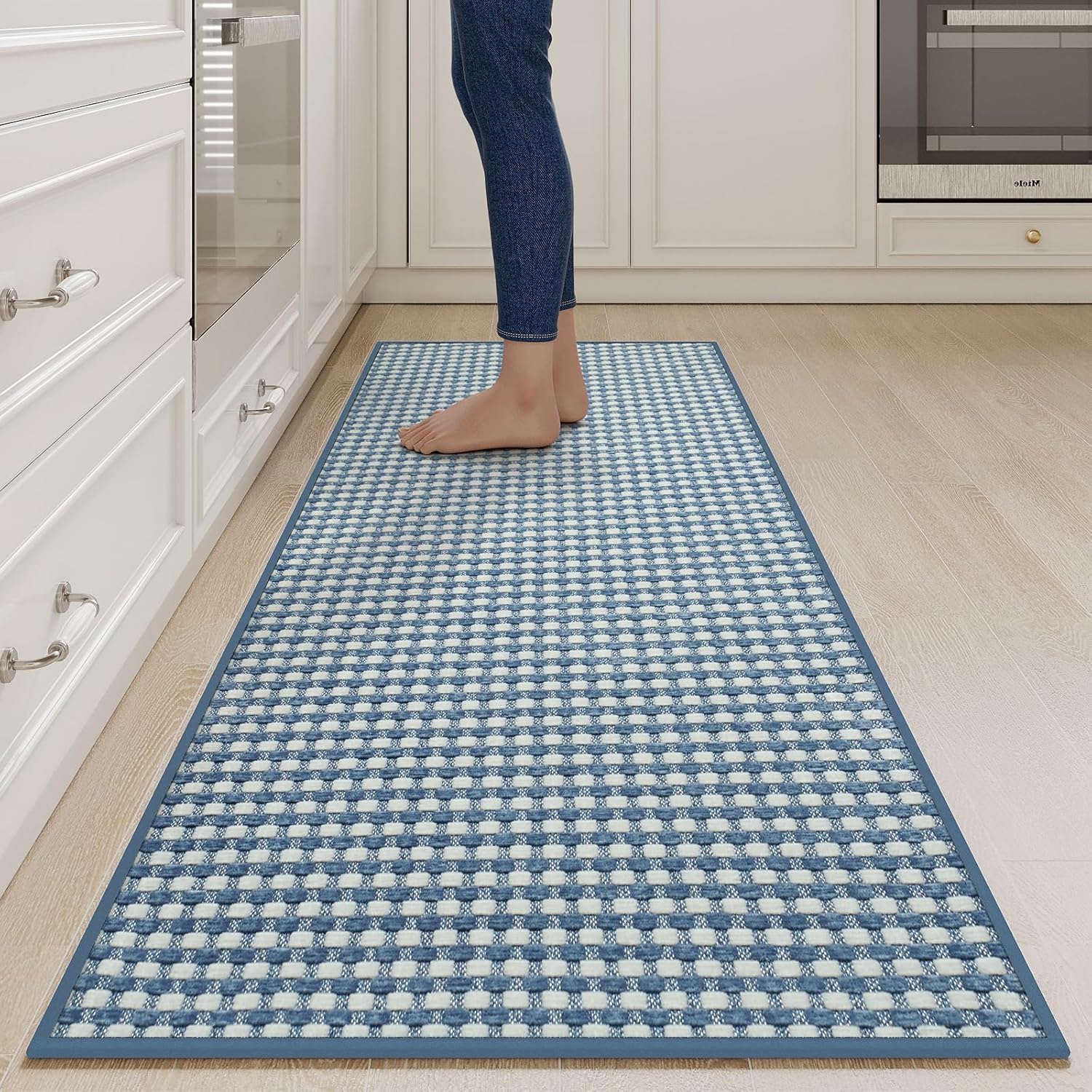 Long Kitchen Runner Rugs Kitchen Mat Non Slip Washable, Super Absorbent Soft Chenille Braided Kitchen Mats for Floor, Rubber Backing Kitchen Floor Sink Standing Mat, Easy Clean, Blue 24"x71"