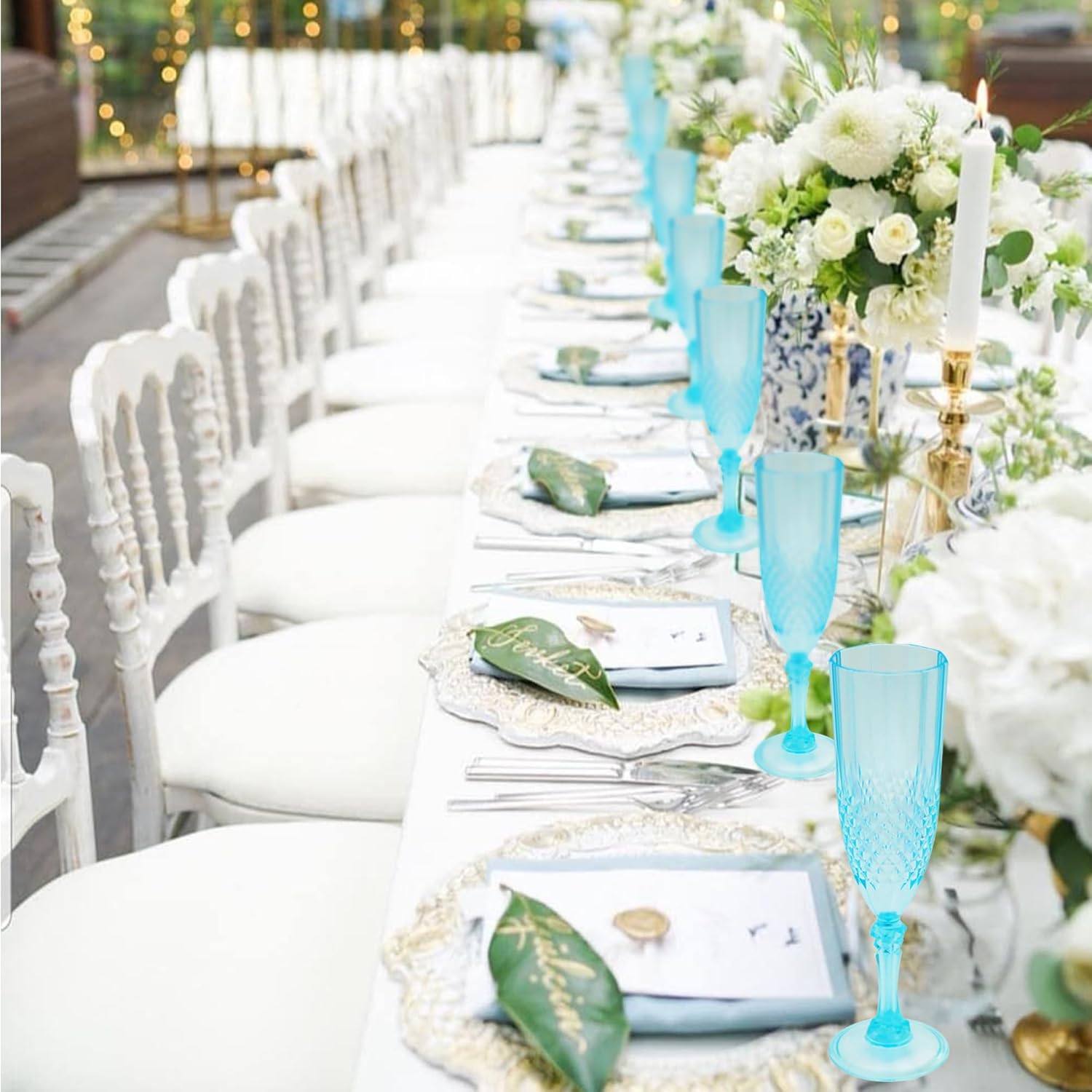 - Charming Set: Champagne flutes set include 12 retro-style light cyan blue champagne plastic wine glasses, providing ample quantity to meet your daily use and replacement needs. A suitable champagne cup is the icing on the cake. Plastic wine glasses not only carry the wine, but also carries the laughter and blessings
