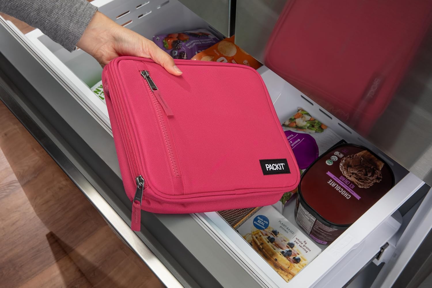 PackIt Freezable Classic Lunch Box, Magenta, Built with ECOFREEZE Technology, Collapsible, Reusable, Zip Closure With Zip Front Pocket and Buckle Handle, Designed for Fresh Lunch On the Go
