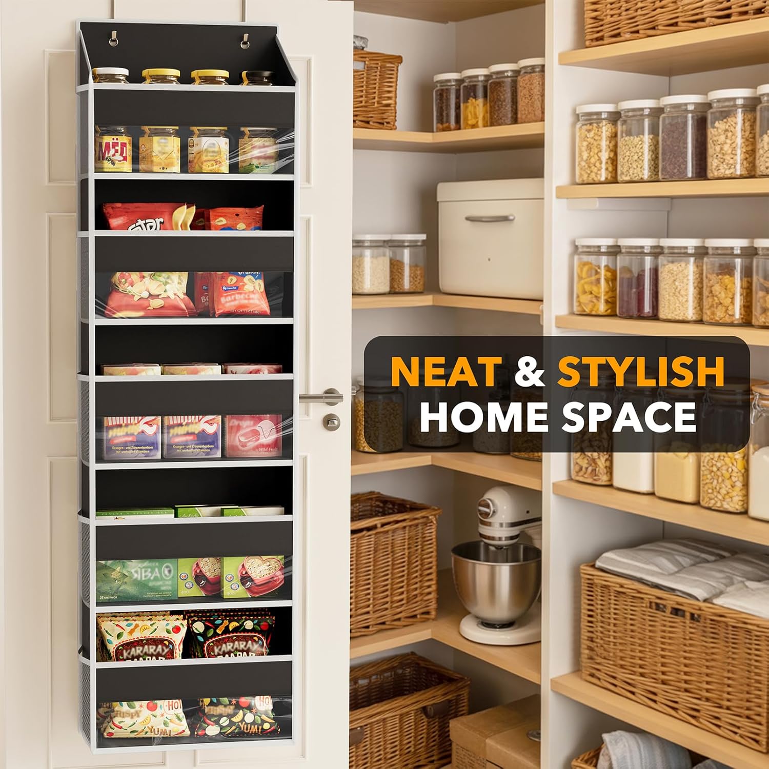 - EASY TO ASSEMBLE - Just attach the hook to the door, hang the organizer on it, and insert the included bottom cardboards; Featuring specially designed metal hooks that accommodate doors up to 1.98" thick