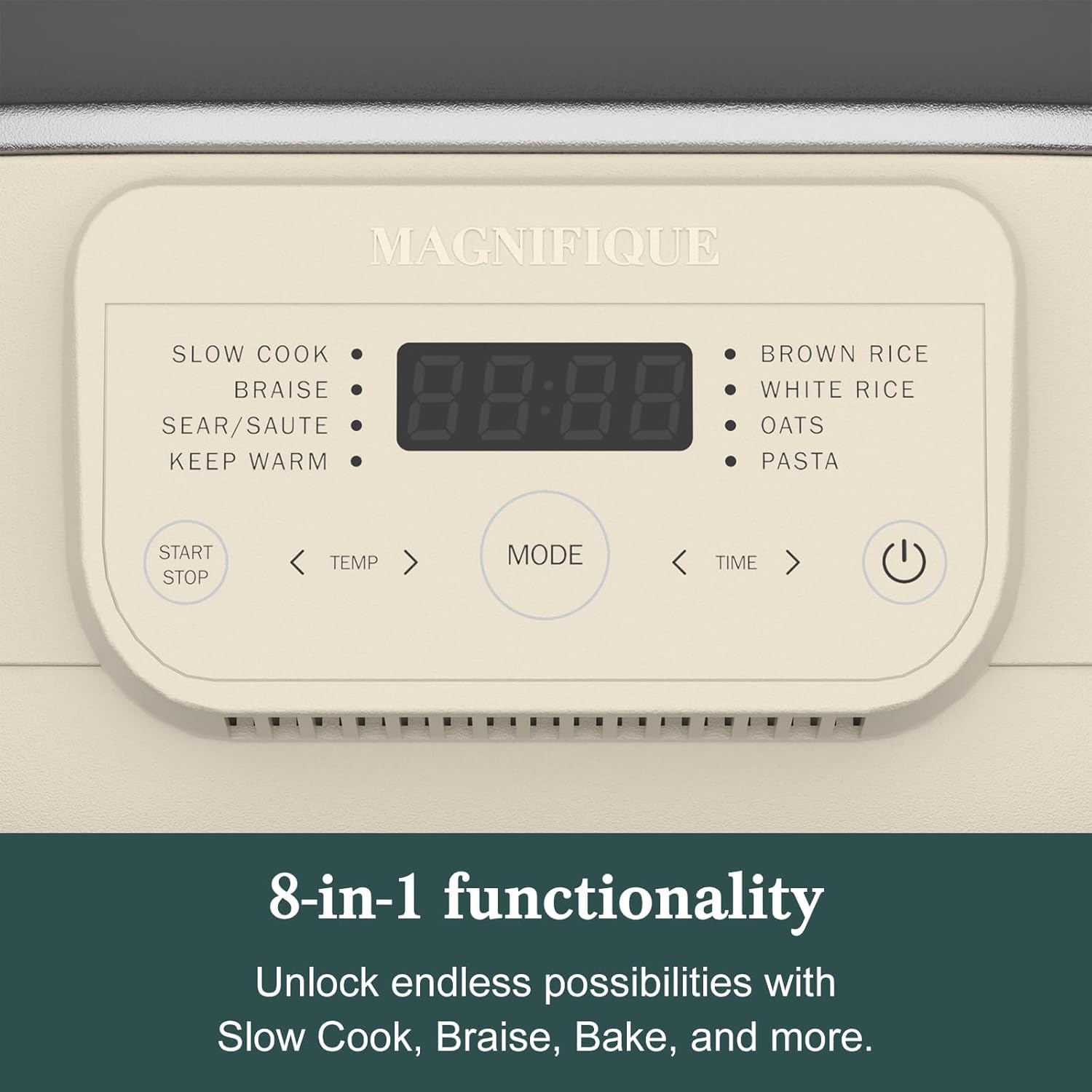 - 8 POWERFUL ONE-TOUCH PRESETS: Slow Cook, Braise, Sear/Sauté, Keep Warm, Brown Rice, White Rice, Oats, Pasta – get every meal covered with the touch of a button