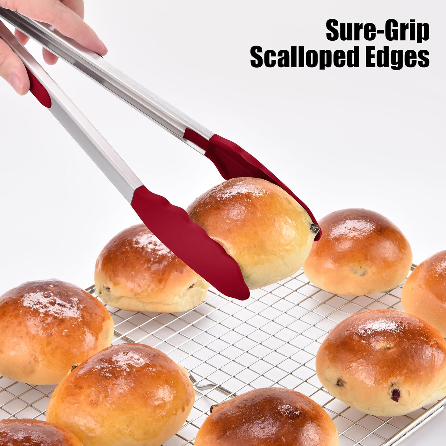 - Are tips heat-resistant and non-scratch? The tips of the tong are coated with high-quality, food grade silicone that is heat-resistant up to 600°F (315°C), making them safe for directly handling hot foods from the oven, stovetop, or grill. Unlike metal-tipped tongs, the soft silicone tip won’t scratch or damage non-stick pans or grill grates. The scalloped edges are specially designed to provide a secure, non-slip grip, easy to grasp delicate vegetables, smooth meat, or small pieces of food.
