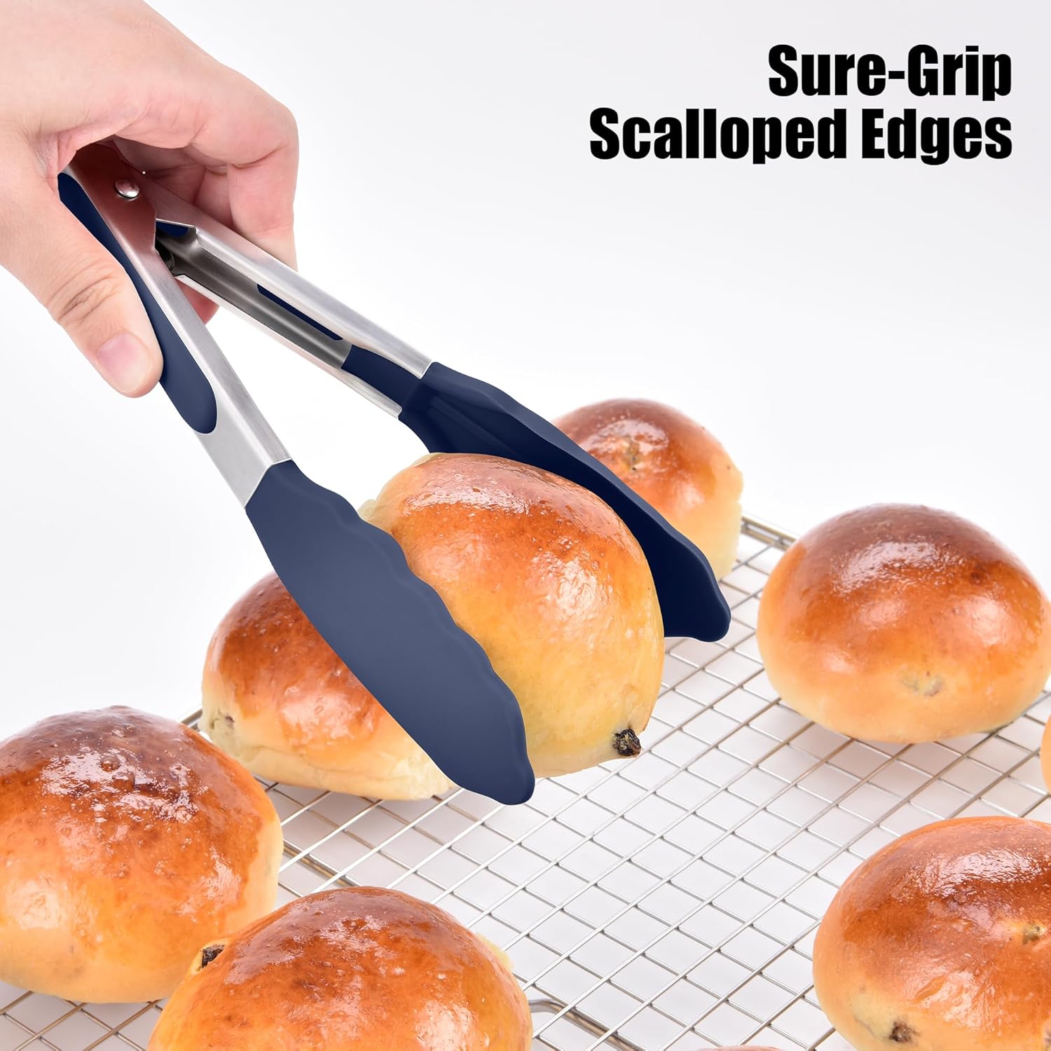 - Are tips heat-resistant and non-scratch? The tips of the tong are coated with high-quality, food grade silicone that is heat-resistant up to 600°F (315°C), making them safe for directly handling hot foods from the oven, stovetop, or grill. Unlike metal-tipped tongs, the soft silicone tip won’t scratch or damage non-stick pans or grill grates. The scalloped edges are specially designed to provide a secure, non-slip grip, easy to grasp delicate vegetables, smooth meat, or small pieces of food.