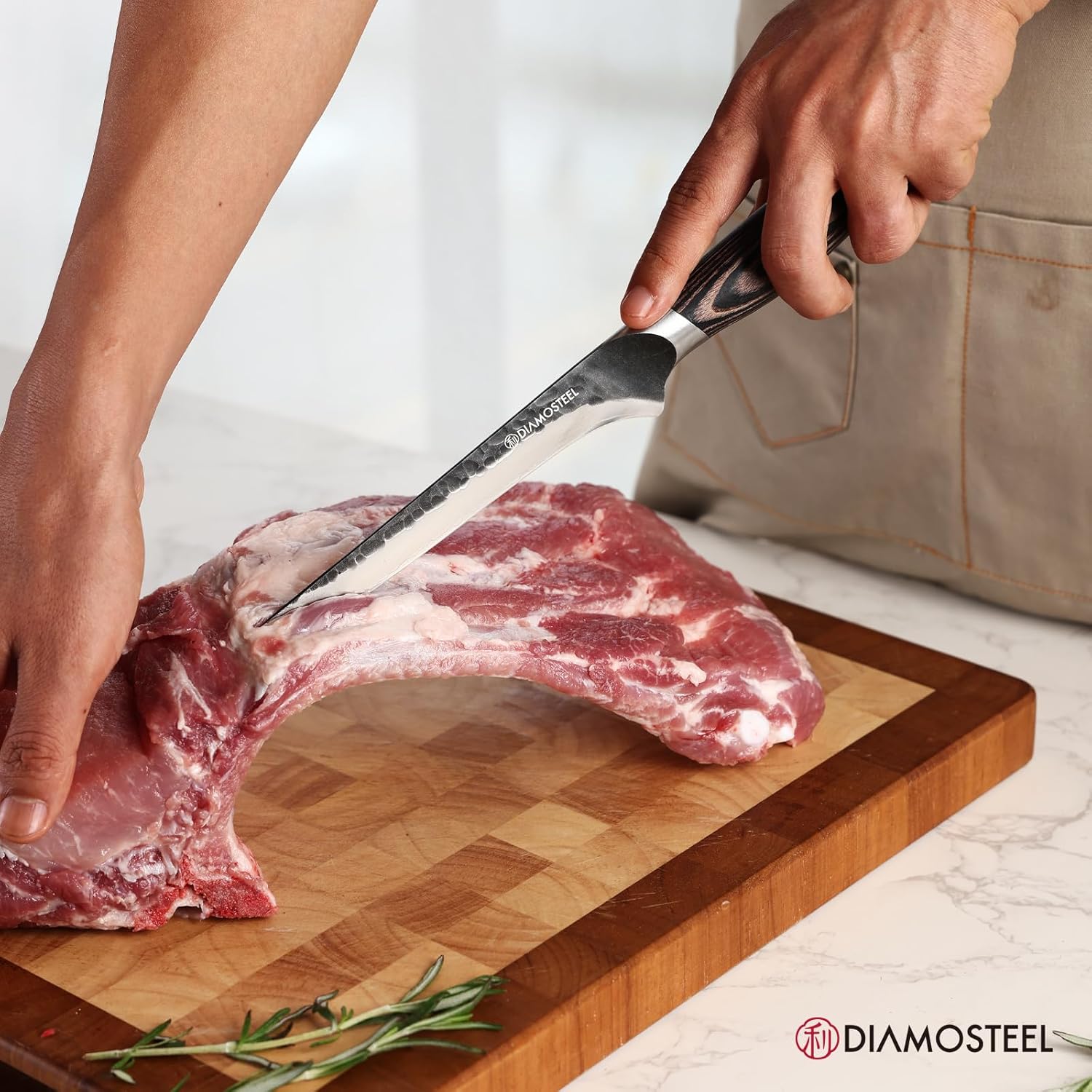 - Premium Triple-Layer Steel Blade - Say goodbye to dull kitchen knives. Our Diamosteel boning knife is crafted from high-quality 9CR18MOV three-layer composite steel, boasting a sharp edge honed to 12-15° and a hardness rating of HRC58-60. This ensures superior edge retention and rust resistance, making it your dependable cooking knife for years of precise slicing and cutting.