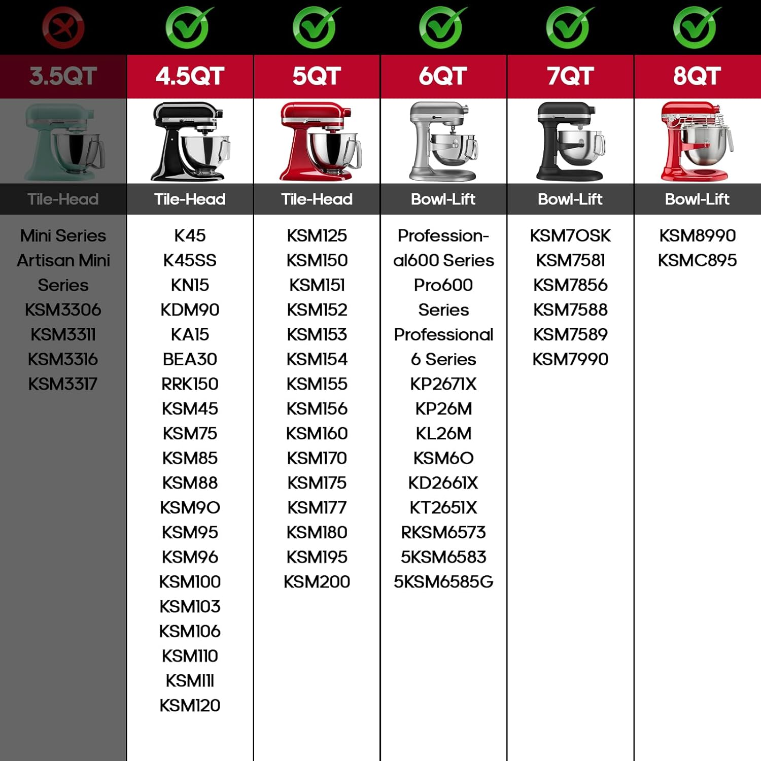 - EASY INSTALL: This ice cream maker as kitchen aid mixer accessories and attachments with a ice cream bowl, dasher and drive assembly. The drive assembly port A is fit for 4.5-5QT Tilt-Head stand mixers, the port B fit for 6QT or larger Bowl-Lift mixers. IMPORTANCE: To install this kitchenaid ice cream attachment for kitchenaid 6QT bowl-lift mixer, please align bowl edge with back hooks first, then press down firmly until locked. Will prevent the ice cream bowl wobbling.