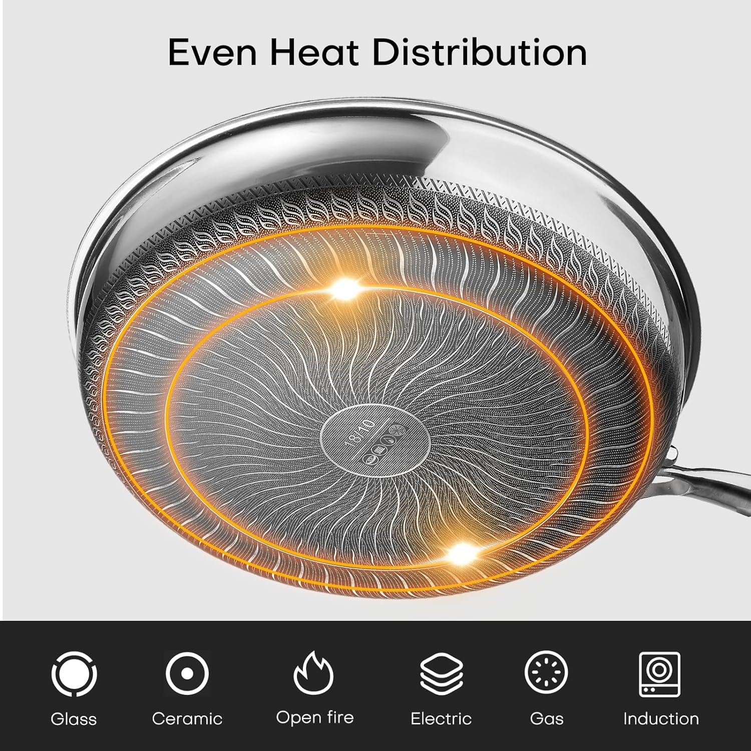 - Premium 18/10 Stainless Steel Construction β Non stick frying pans made with high-quality, coating and snow pattern surface design, durable 18/10 stainless steel for even heating, corrosion resistance, and long-lasting performance. superior non-stick performance.
