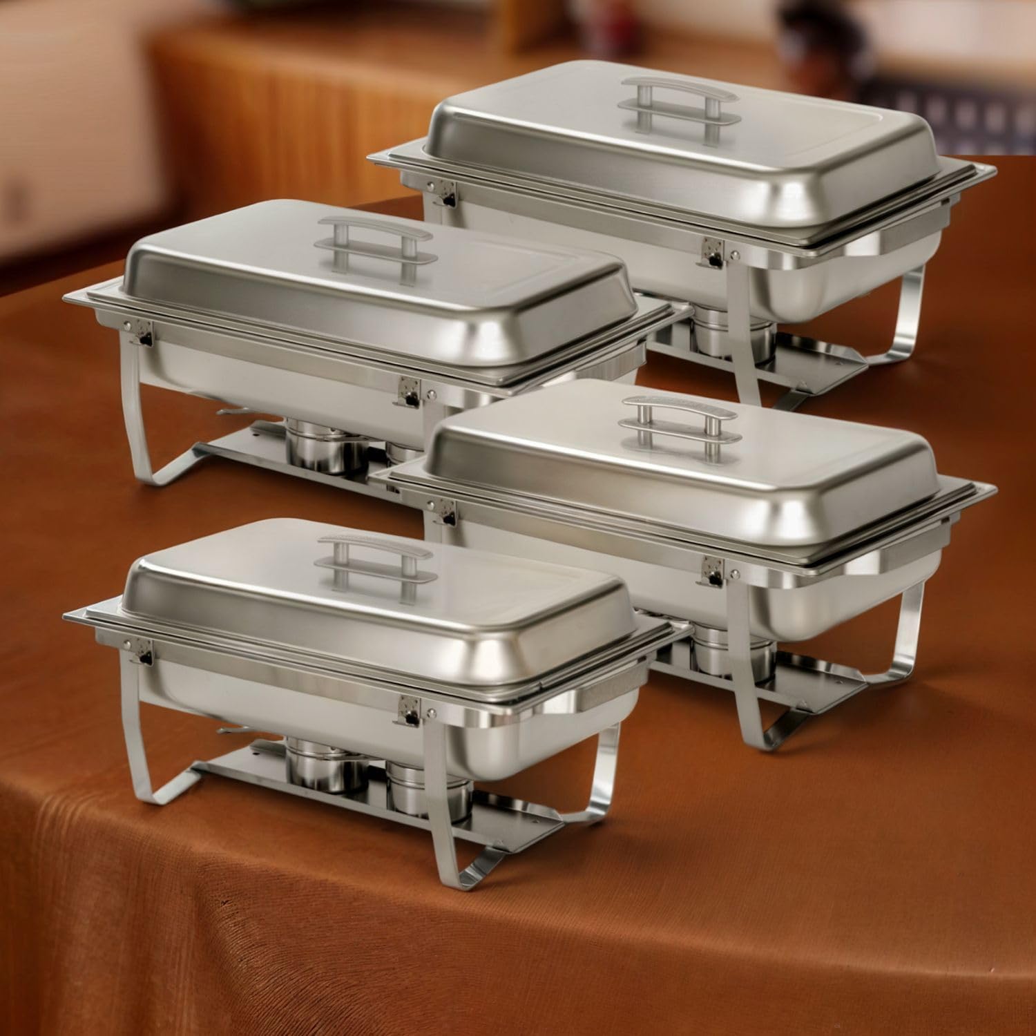 4 Pack 9.5QT Chafing Dish Full Set – Stainless Steel Catering Chafer with Lids, Pans & Fuel Holders – Buffet Food Warmers for Parties, Events & Weddings (Rolled Edges)