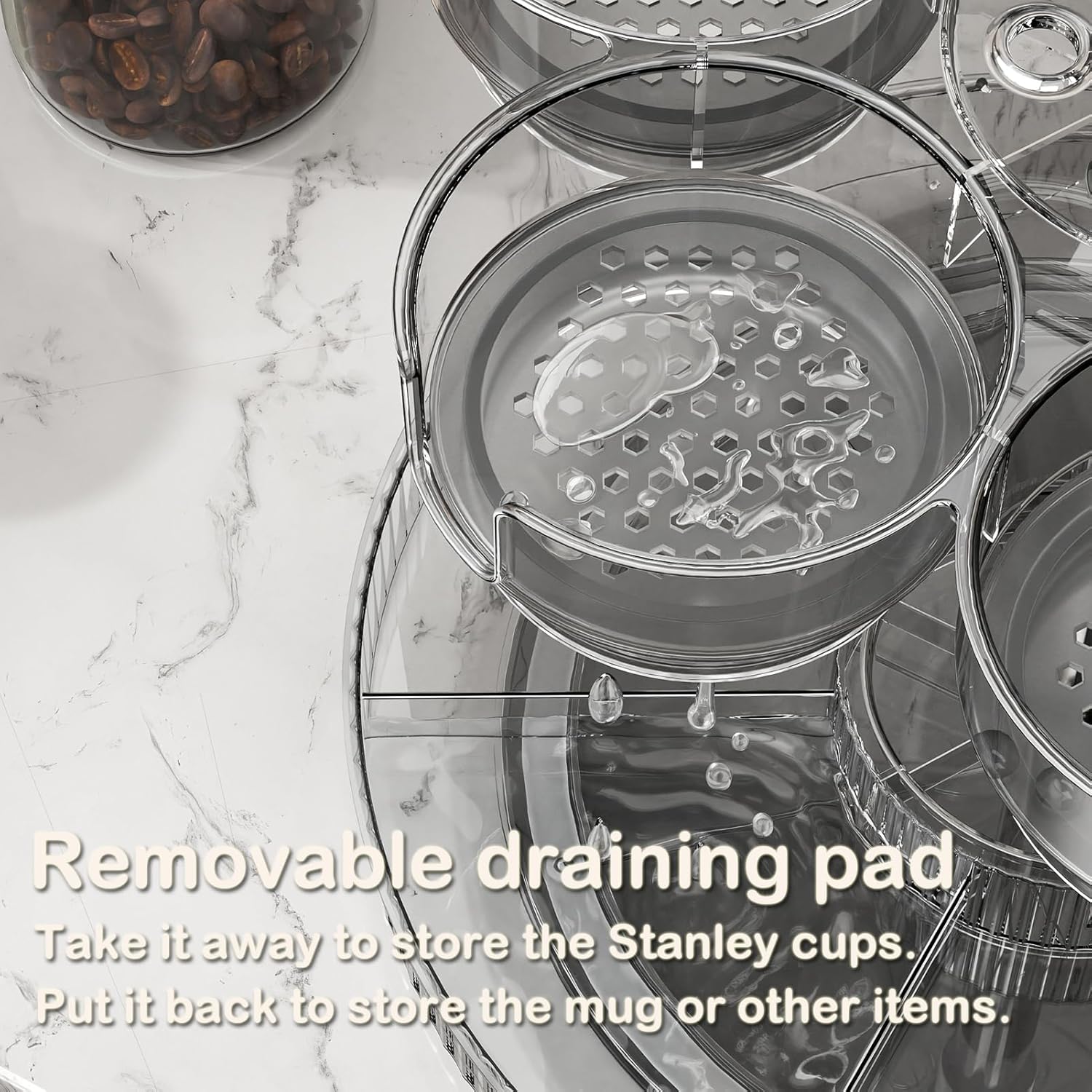 - Rotating Stanley Cup Holder, Portable Water Bottle Organizer for 6 Stanley 40 oz & Mug, Adjustable Lazy Susan Organizer for Table Top Cabinet Home Countertop Pantry Shelf Tumbler Lid Organizer