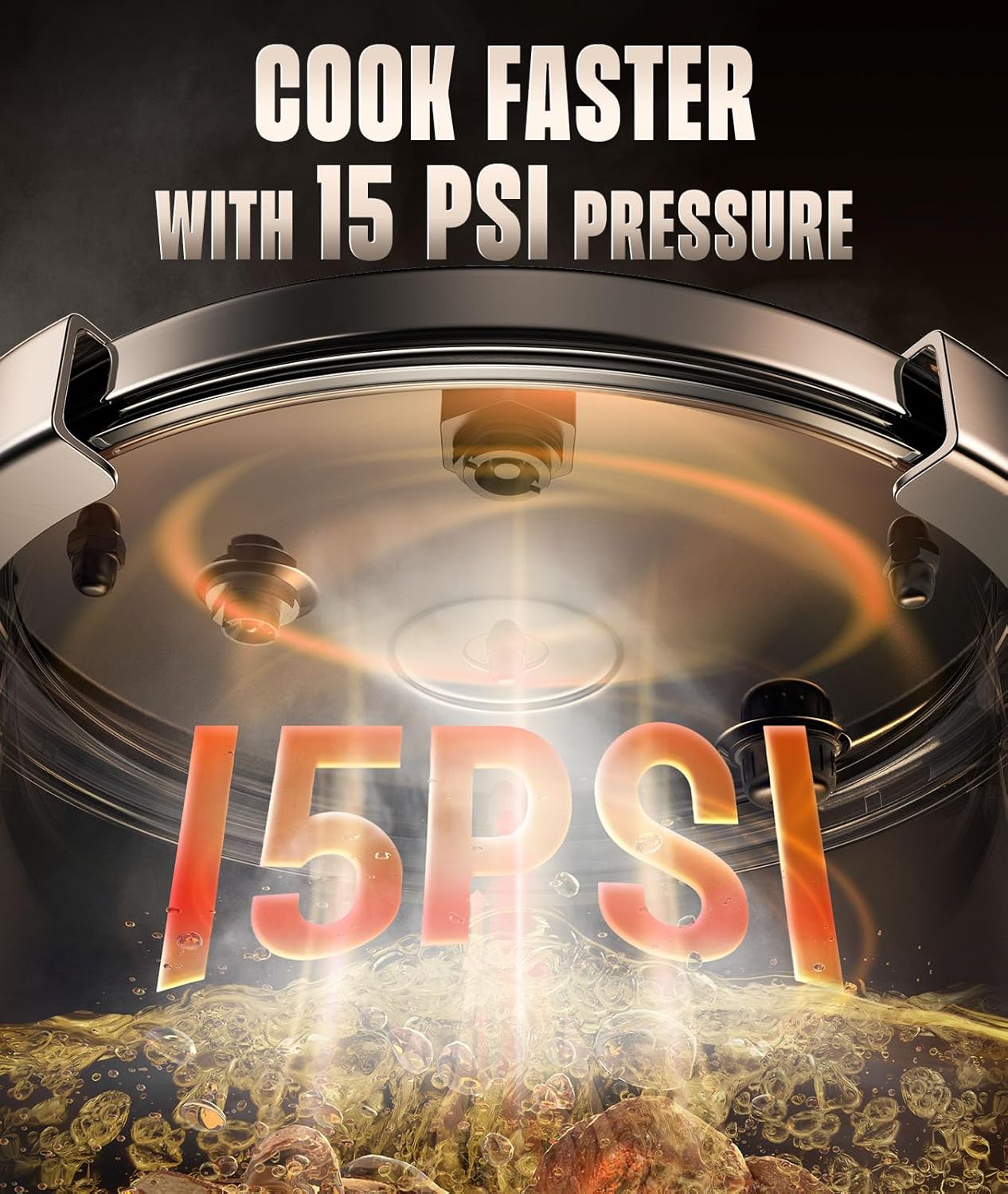 - [Save Time with Revolutionary Efficiency] Our stainless steel pressure cooker cuts cooking time by 70% compared to traditional pots and 35% faster than other pressure cookers, thanks to its innovative design. The tri-arm structure ensures a triangular stability, with wider clamp coverage that enhances the sealing capability. Tested to support up to 15PSI of pressure, it accelerates cooking like never before! Experience the ultimate cooking convenience, delivering quick and delicious meals for every family!