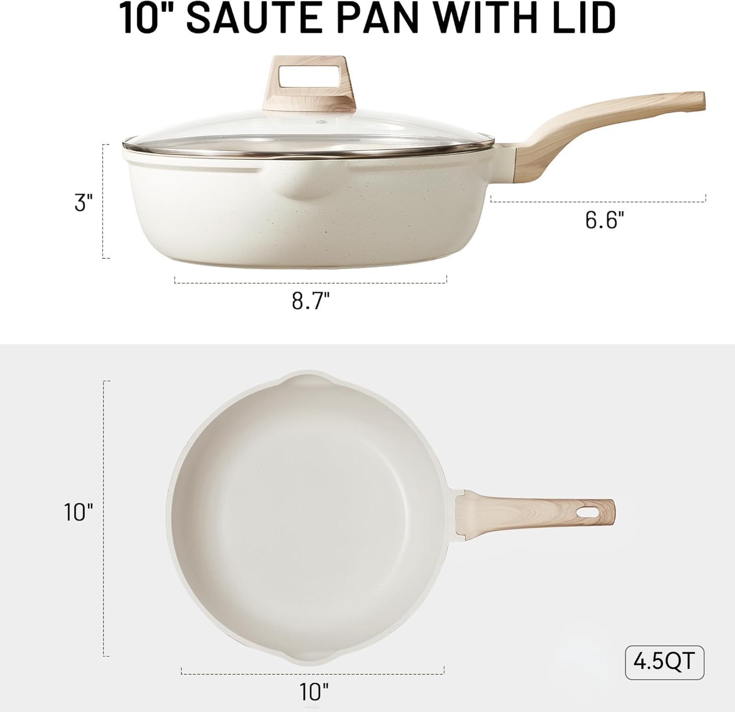 - ăSuperior Nonstick Performanceă - Our saute pan, made with natural granite materials, provides superior nonstick performance with 100% PFOA Free and non-toxic properties. Enjoy healthier cooking with less oil intake. Advanced technology ensures a long-lasting and naturally nonstick surface that effortlessly releases food.