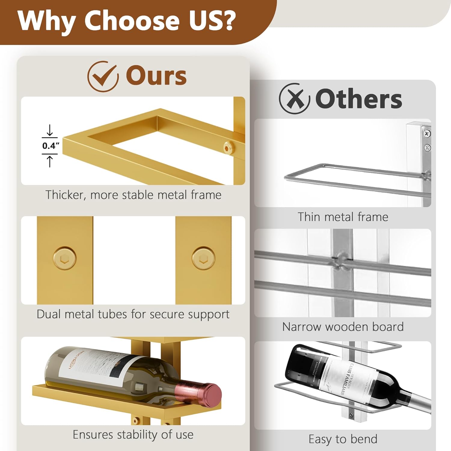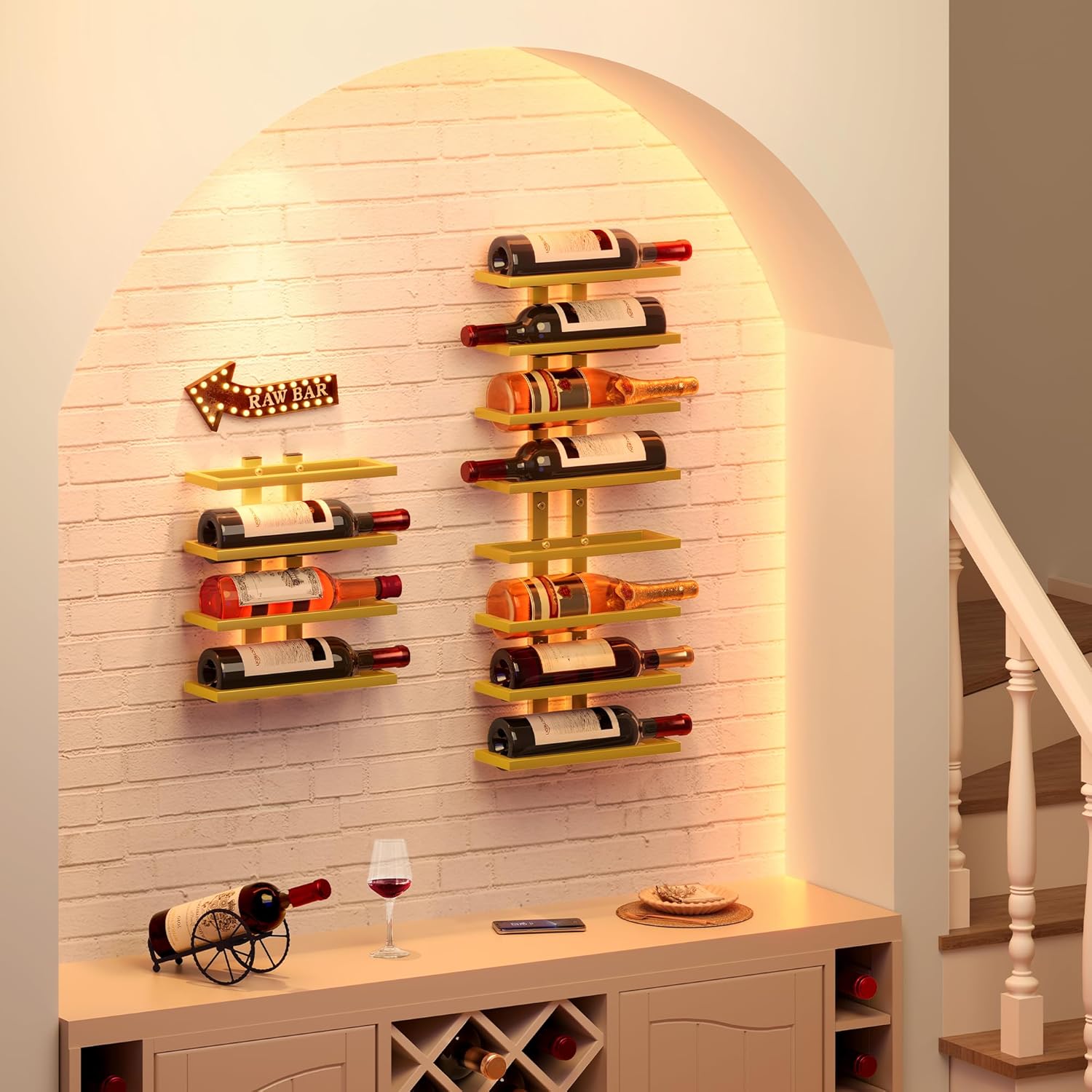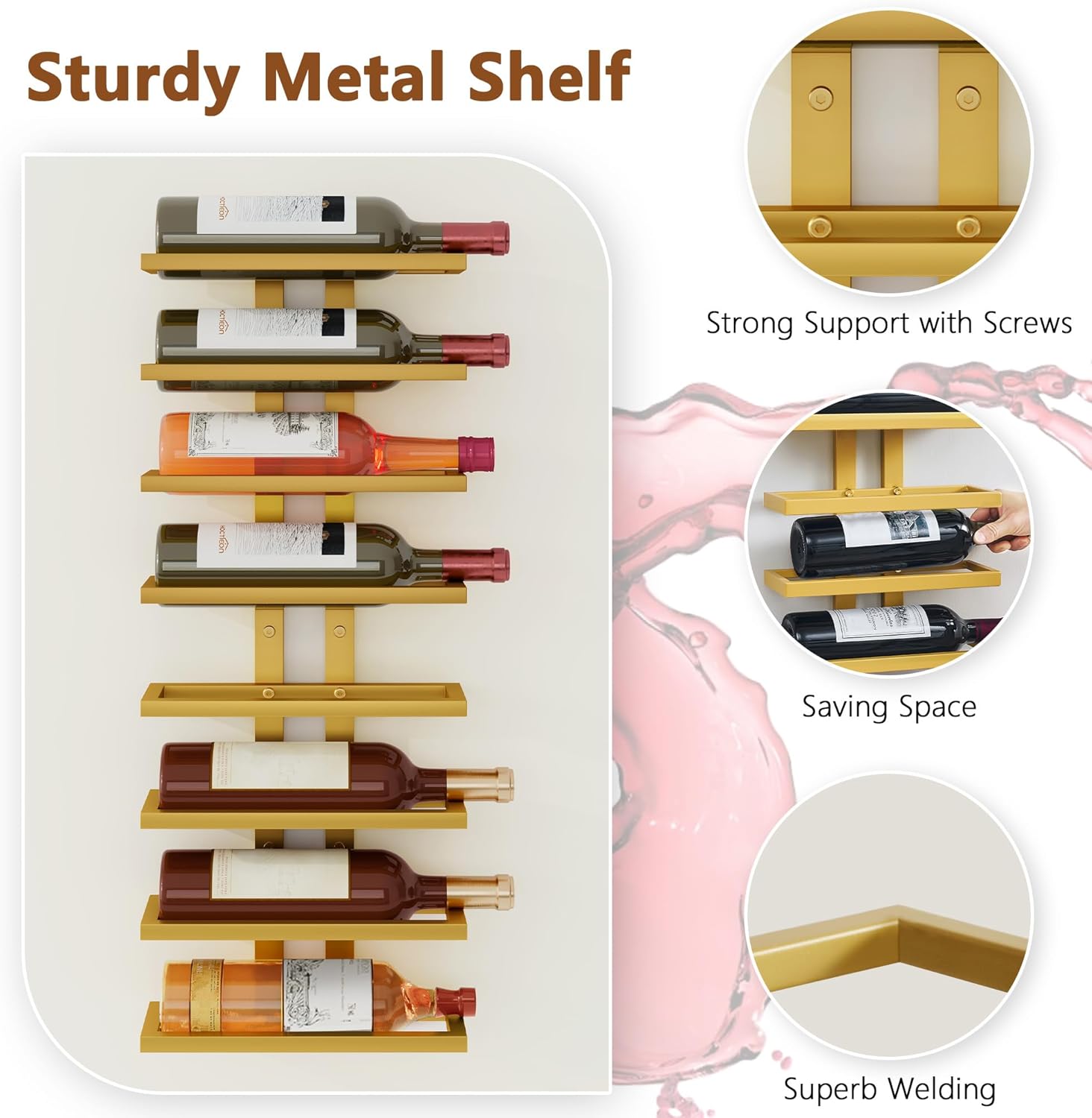 Hoctieon 3-Set 8 Tier Wall Mount Wine Rack (24 Tiers), Wall Racks for Wine Bottles Display and Storage, Hanging Bottle Organizer for Living Room, Dining Room, Wine Cellar, Bar, Gold