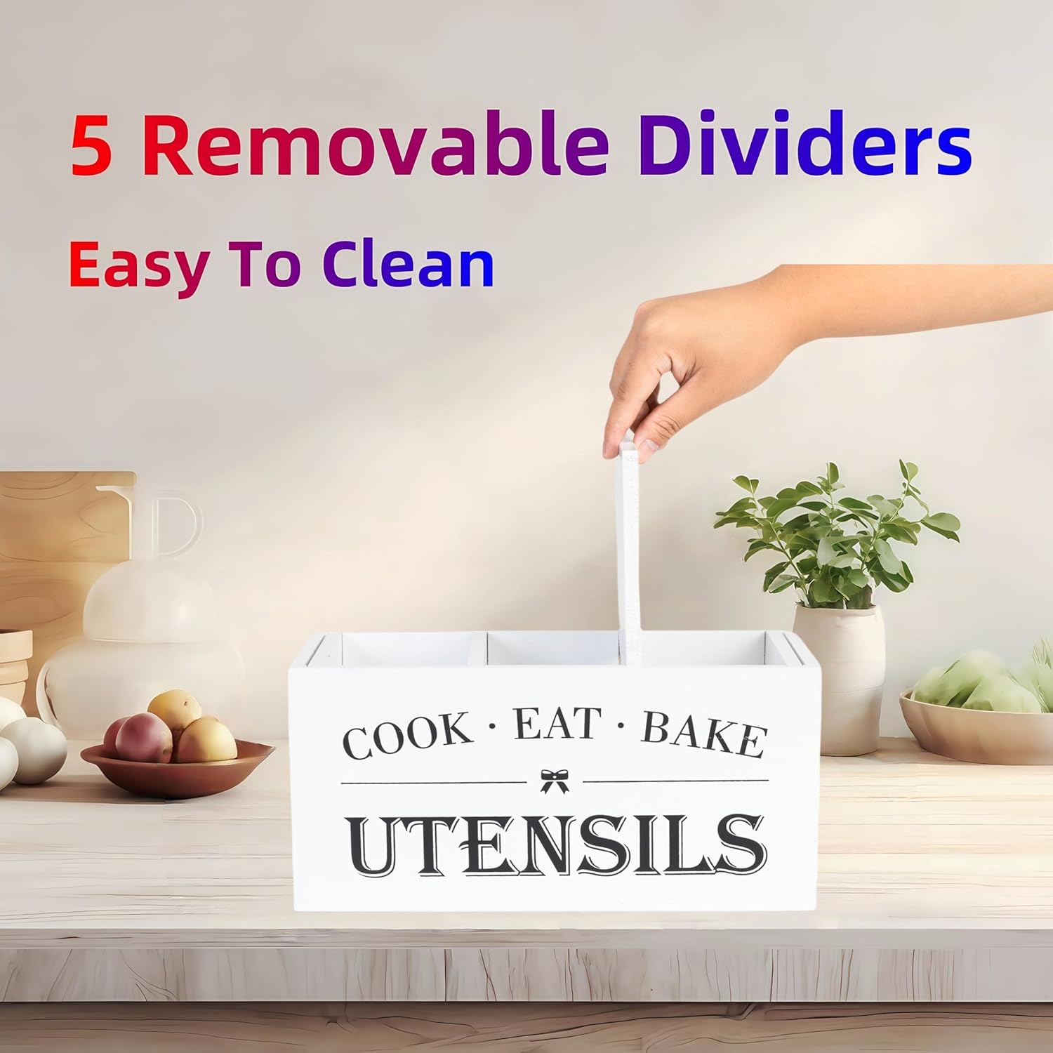 - 3 Detachable Compartments: Our innovative design features four removable compartments, offering unparalleled flexibility and customization. Easily rearrange or remove compartments to suit your needs, whether you're storing longer utensils like rolling pins or smaller items like measuring spoons. This modular system ensures that every item has its designated place, making it simpler to find what you need when you need it.