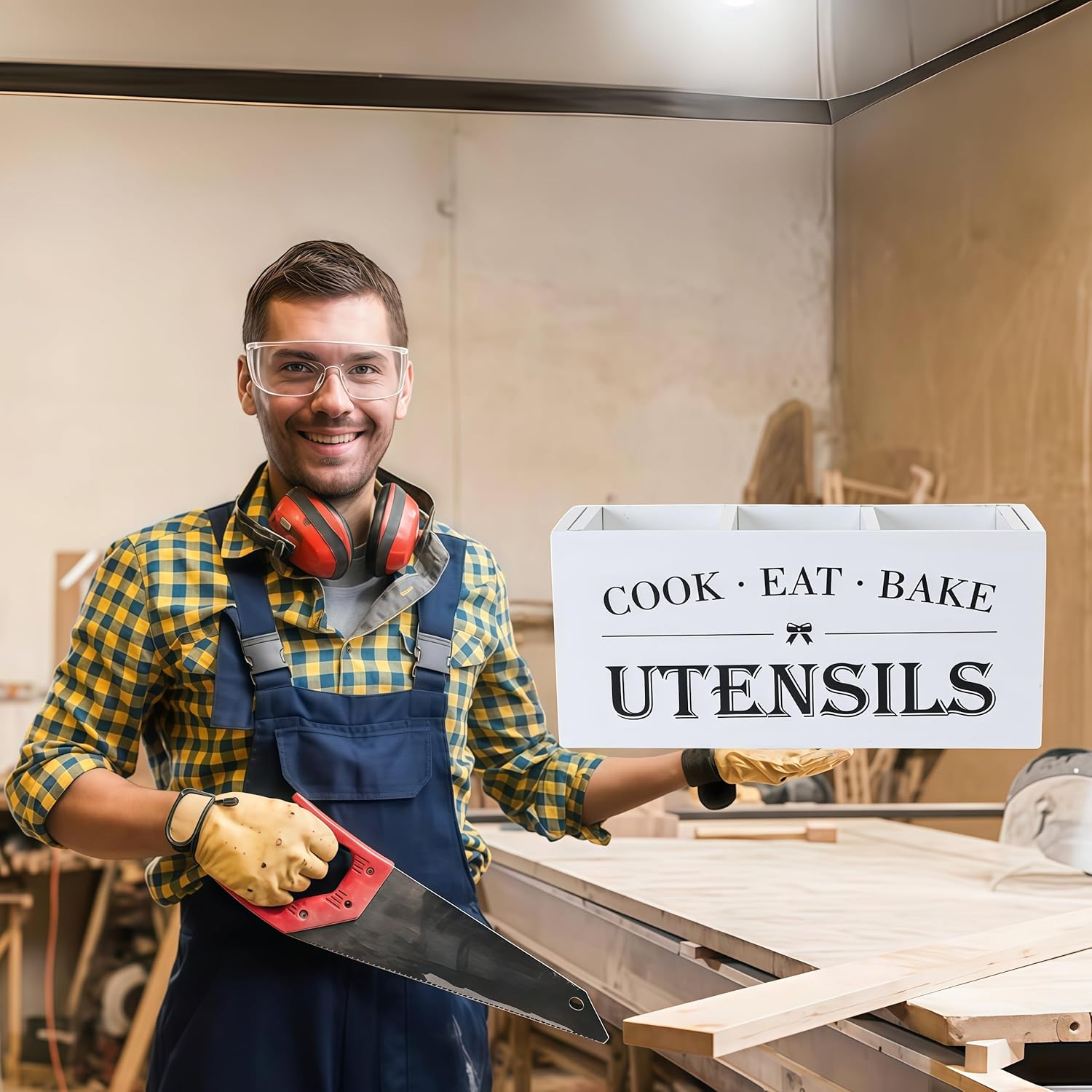 - Versatile Use: The versatility of our wooden utensil holder makes it perfect for a multitude of settings. Use it in the kitchen to keep your cooking tools organized, on the dining table to hold condiments and napkin rings, or even in the office to store pens, scissors, and other desk essentials. Its sleek, neutral aesthetic ensures it blends seamlessly into any environment.