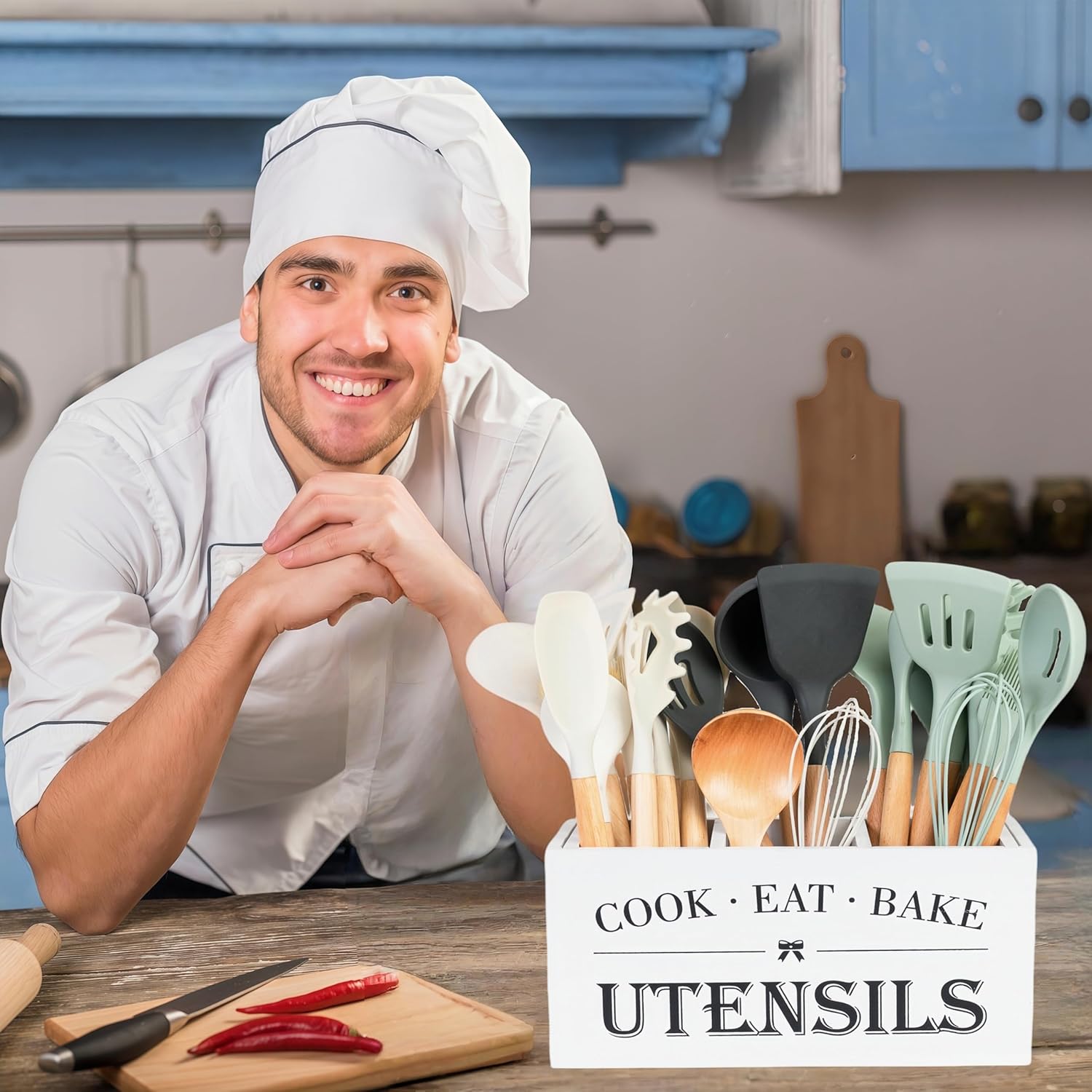 - Durability & Ease of Care: Made from robust wood, this utensil holder is built to last, withstanding daily use and the test of time. The smooth, finished surface is easy to clean; simply wipe with a damp cloth to maintain its beautiful appearance.