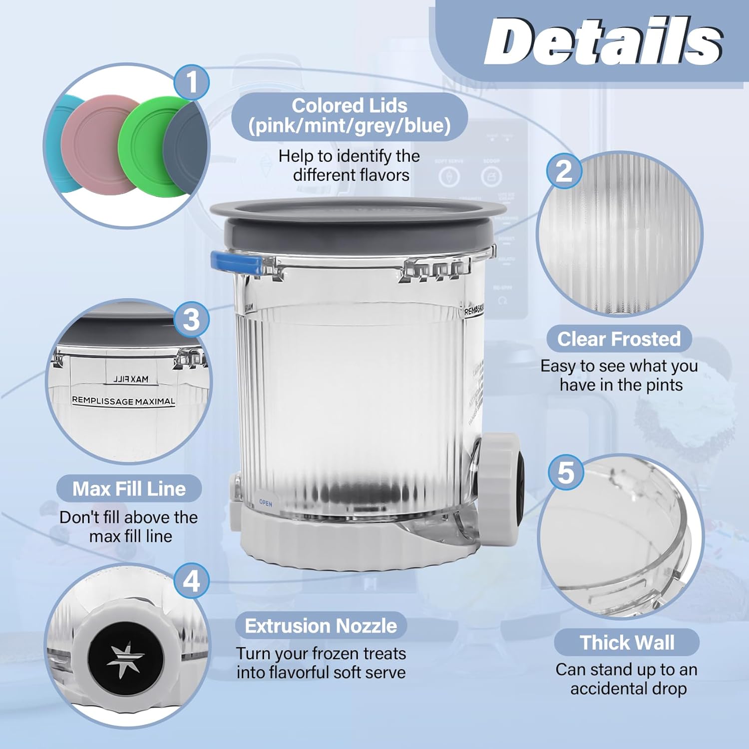 - 【EASY CLEANING】- The replacement pints for Ninja Swirl Soft Serve makers are BPA free, dishwasher safe and easy to be hand-washed with warm water.