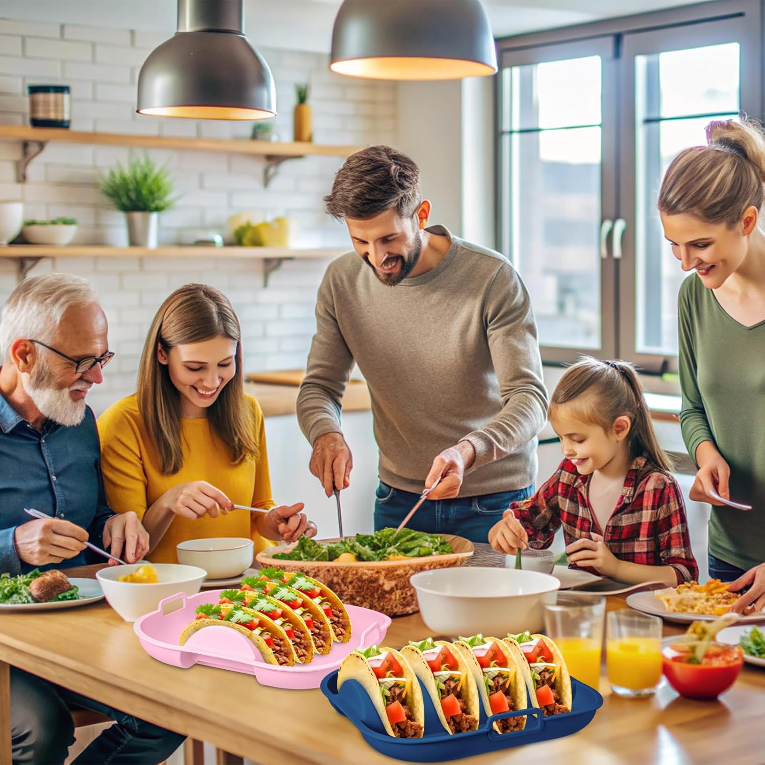 - Mexican Taco Meals: silicone Taco holder plates are here to securely hold tacos standing upright and stable, making it easier than ever to fill, serve, and enjoy your tacos; This set of 2 taco plates is a game-changer, no more spills or tacos tipping over, and say goodbye to tacos soaking in sauce