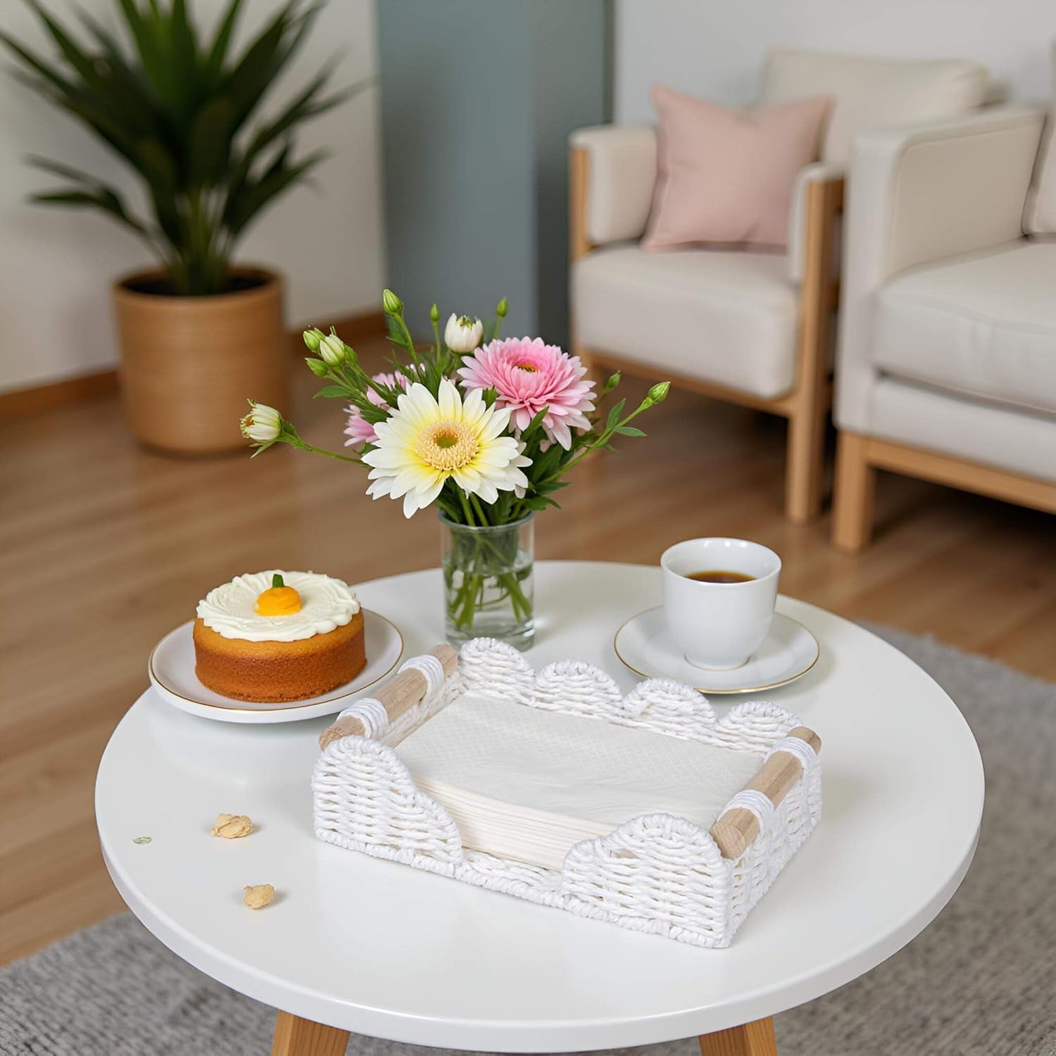 - Handwoven with Premium Paper Rope - Each napkin holder is hand-woven from paper rope and wrapped wooden handles. It is chemical-free. Biodegradable and eco-friendly material, durable. Natural texture add a warmth to kitchen home decor.