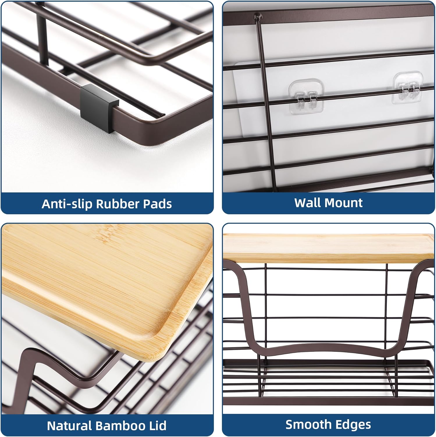 - Two Installation Options—No Drilling Required. Use them stacked on countertops or mount on walls with the included adhesive strips—no drilling or wall damage needed. Perfect for renters or anyone wanting a clean, tool-free setup.