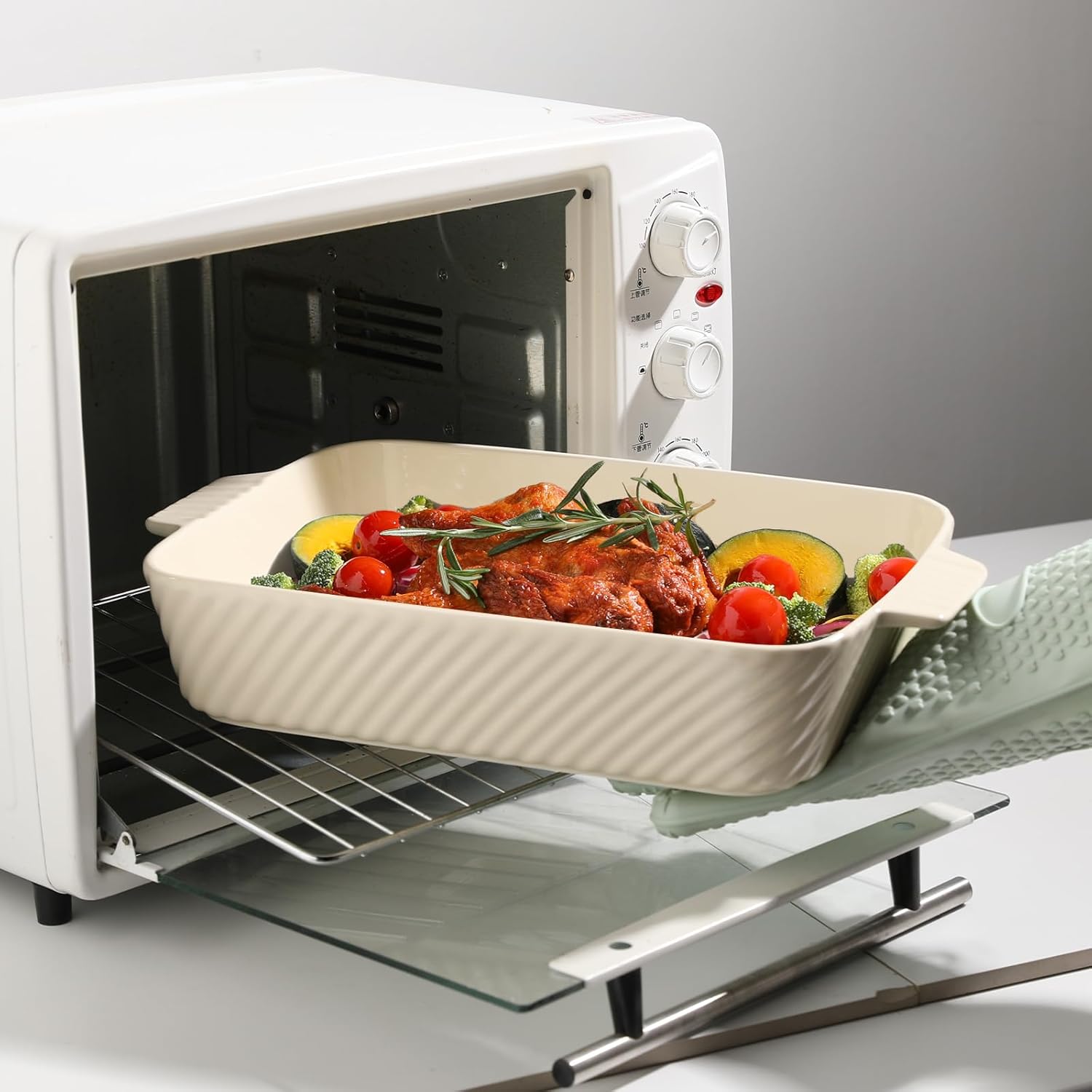 - Worthy Results at Home - Unlock professional browning magic with our intelligently ribbed ceramic surface! Simple lines outline an extraordinary kitchen experience. Fresh colors are matched with a glossy glaze to create a gourmet feast in the kitchen. Plus, the baking pans transition seamlessly from oven-to-table, radiating rustic elegance.