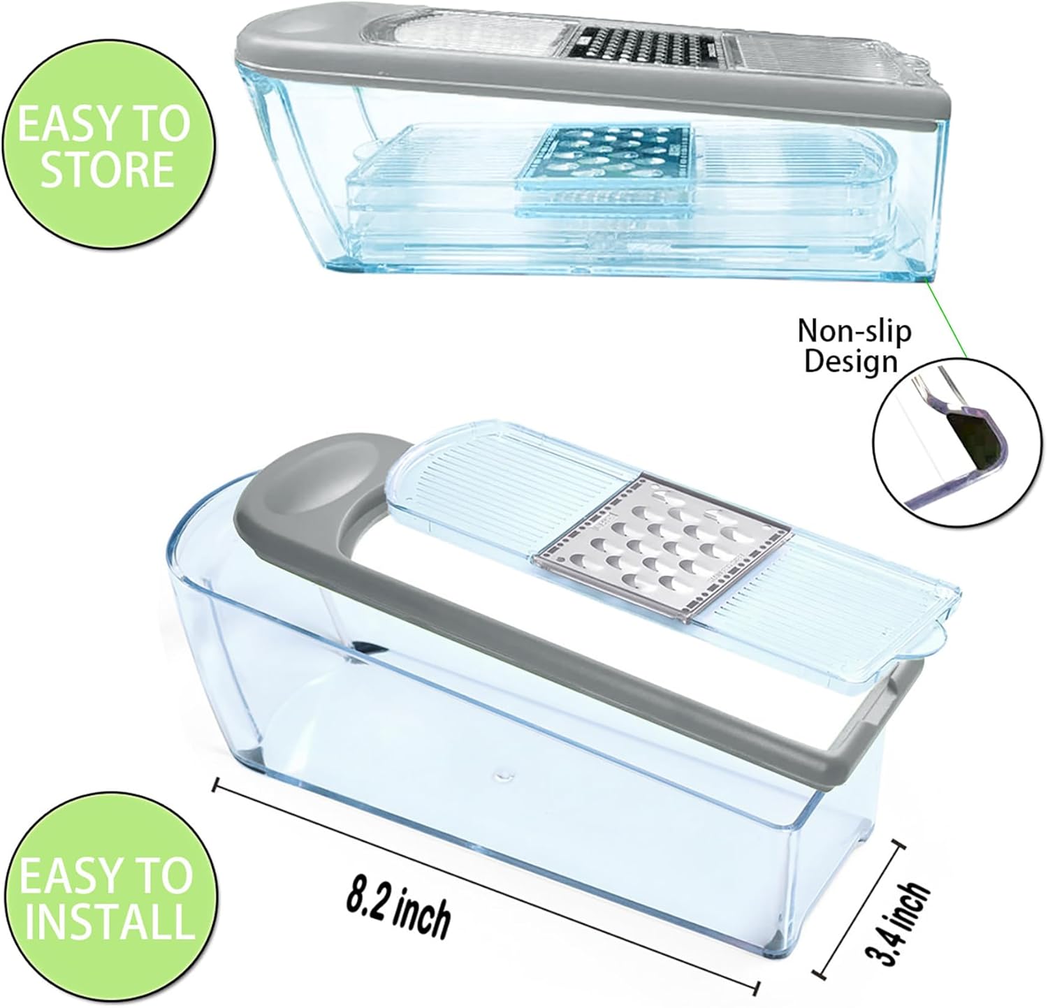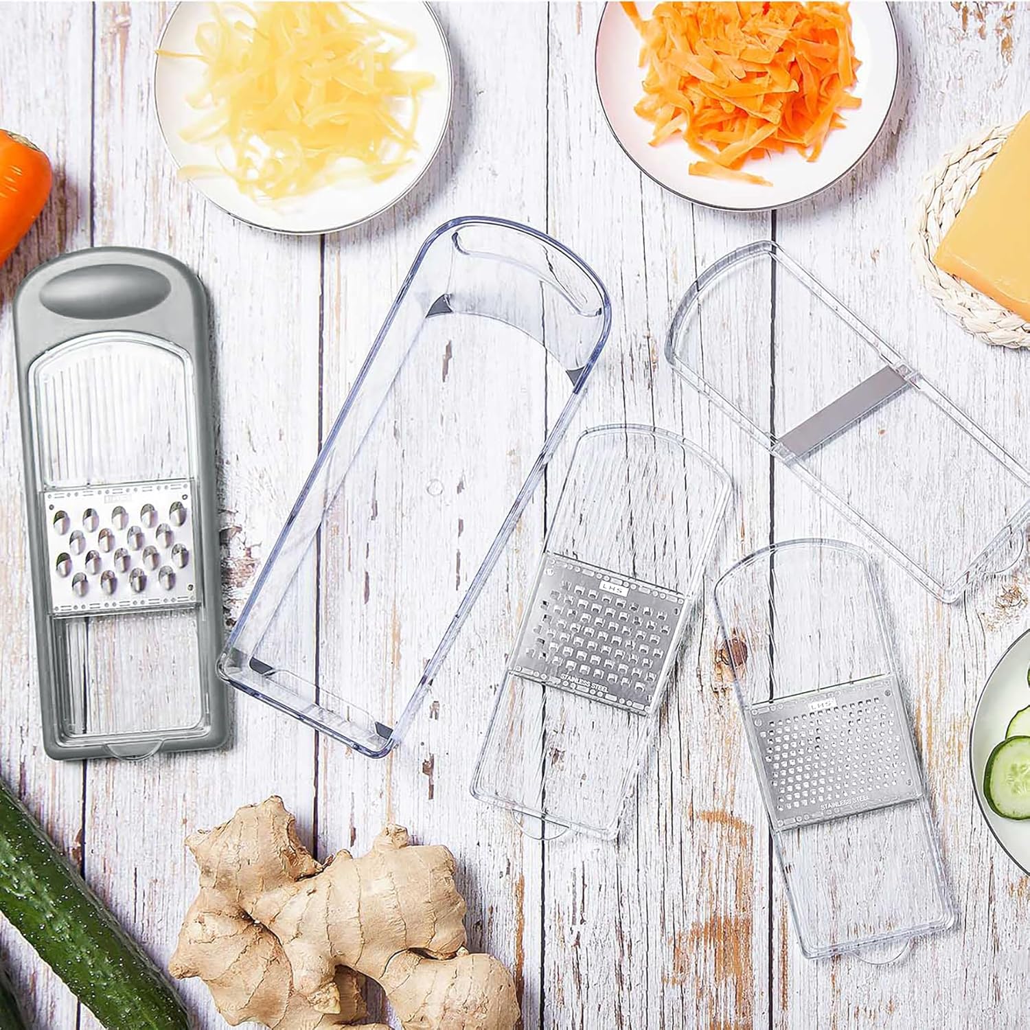 LHS Mandoline Slicer, 4 Sharp Stainless Steel Blades with Food Storage Container — Kitchen Tools for Cheese, Chocolate, Vegetables& Fruits - Dishwasher Safe (grey)
