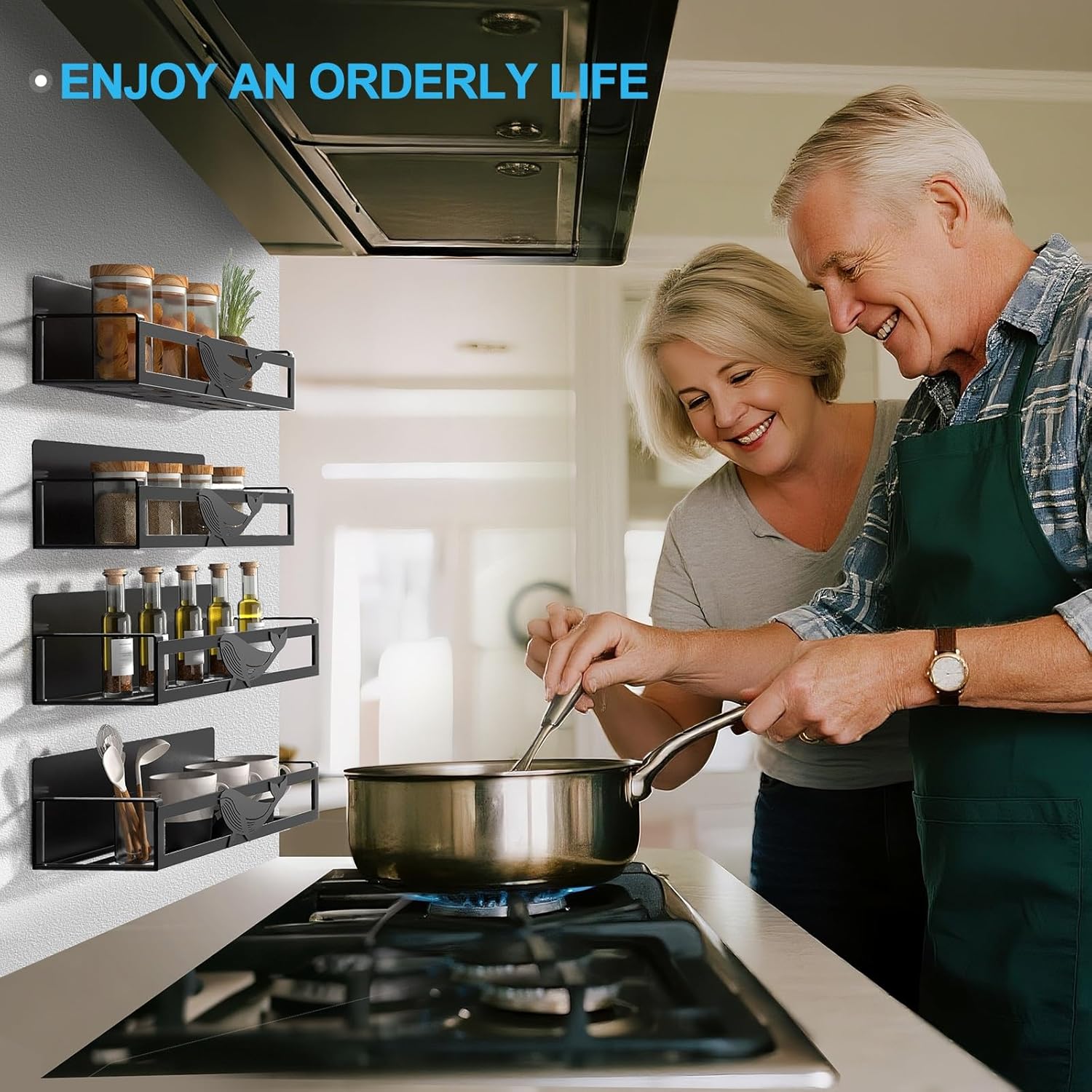 Magnetic Spice Rack for Refrigerator, 4-Pack Metal Seasoning Organizer for Kitchen Storage Organization, Magnetic Shelf for Fridge Space Saving Spice Organizer, Black