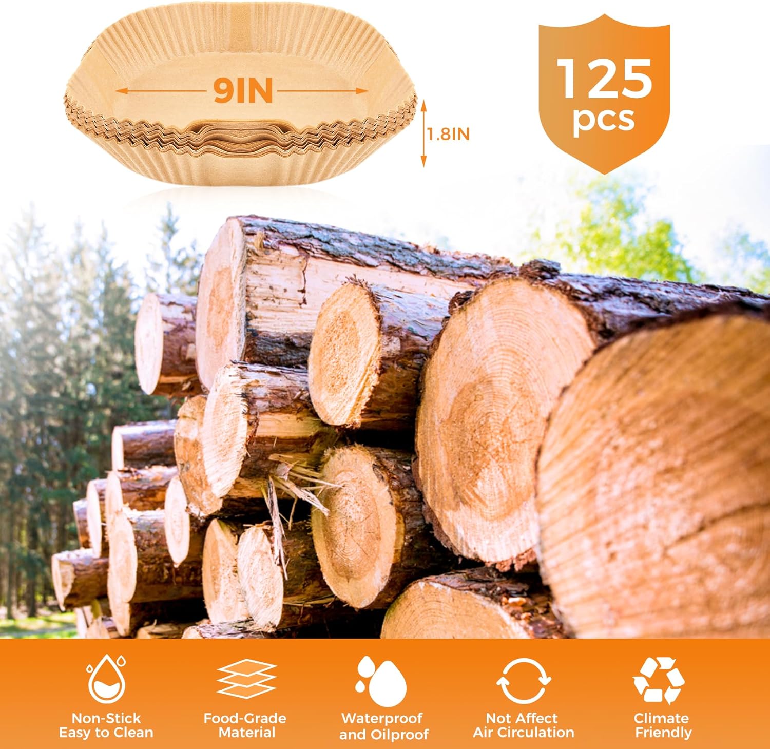 Vailnd Air Fryer Disposable Paper Liners 9inch Square, 125PCS Non-Stick Food Grade Air Fryer Parchment Paper, Oil Resistant & Waterproof Baking Liner for 8-12 QT Air Fryer Oven