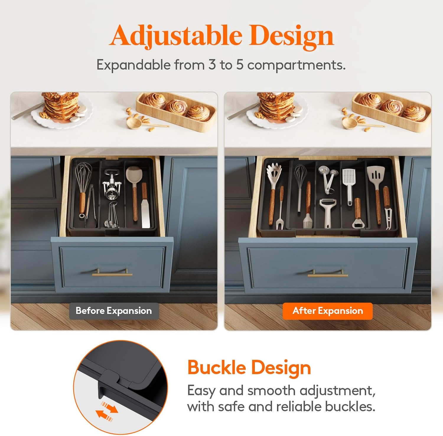 - Sort Your Silverware: The silverware tray comes with 3-5 compartments, creating more space in drawers for spatulas, ladles, tongs, utensil sets, and whisks. Streamline your cooking with a no-install organizer that keeps cutlery at your fingertips