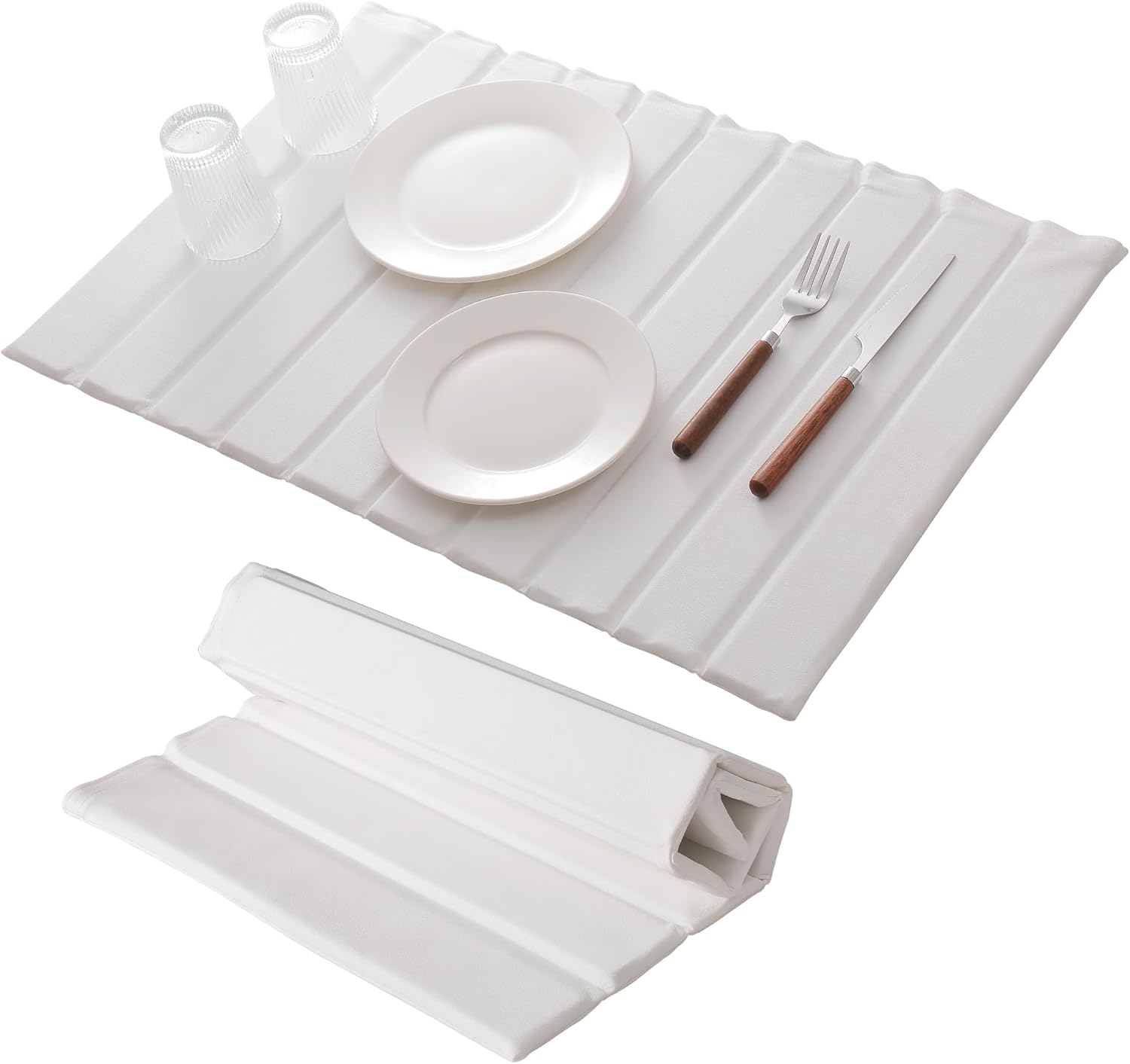 - 【Foldable space-saving design】Our stone drying mat measures 23.6x15.7 inches when unfolded, which is much larger than the standard drain mat. At the same time, it can be easily rolled up or folded, which is convenient for storage in drawers or cabinets, saving space for any family.