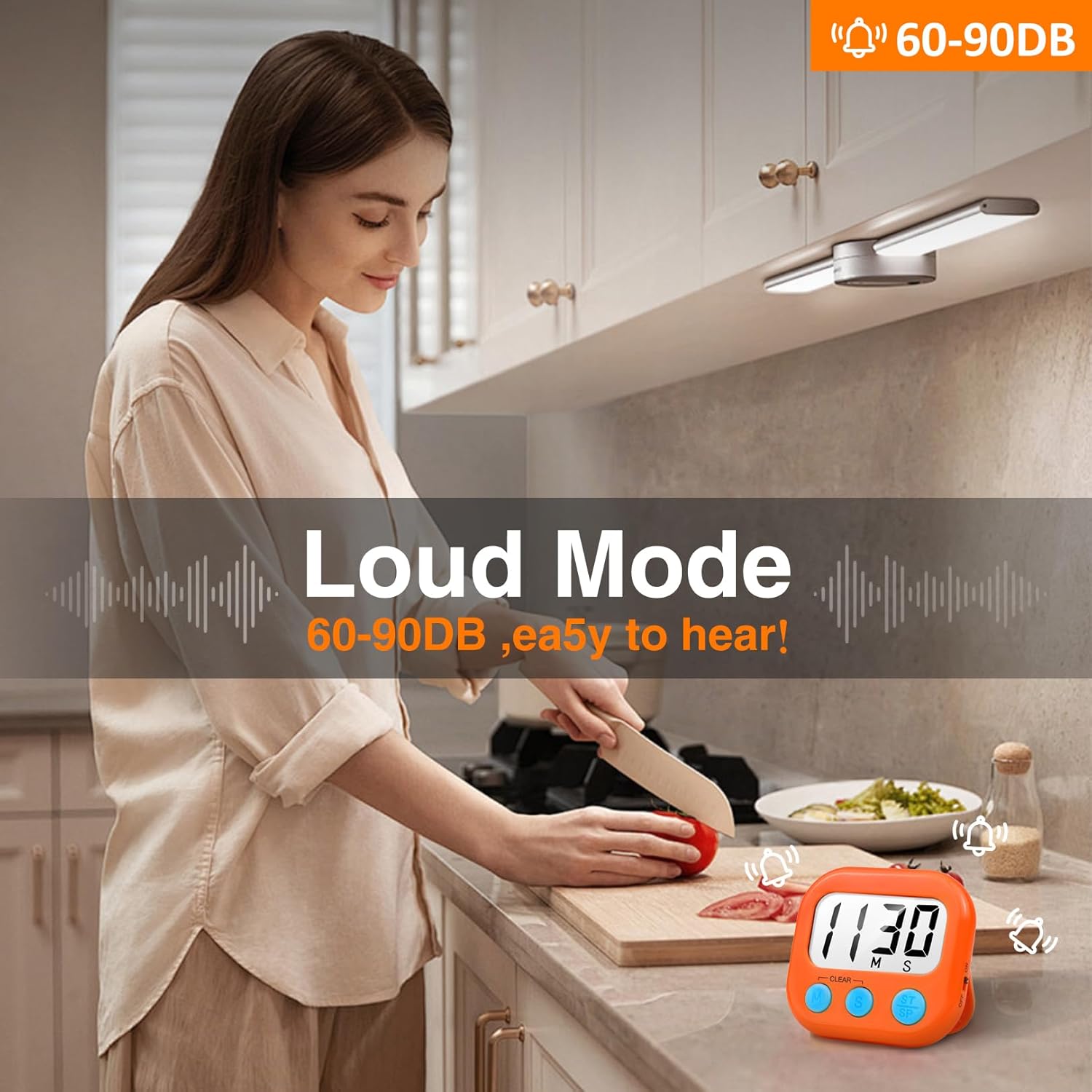 - Kitchen Timers with big buttons, large digital display, loud buzzer and clean bright look(Battery Not Included)