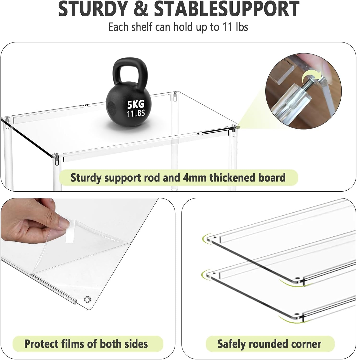 - Durable & Sturdy: Crafted from 4 mm thickened acrylic with integrated non-slip dots, each unit withstands 11 lbs + without bending. Ours risers (vs traditional rod supports) ensure decades of warp-free use even in humid environments. Acrylic material requires only 30-second wipe-downs with damp cloth faster to clean than inferior wood and metal or wire organizers which is lightweight and sturdy.