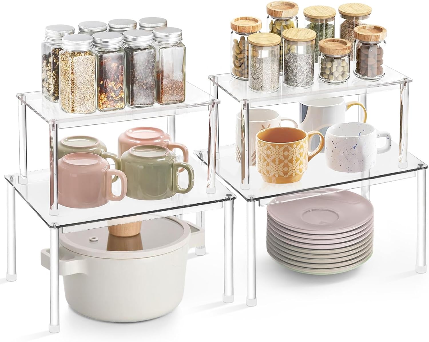 Acrylic Cabinet Organizers : 4Pcs Spice Rack Organizer for Cabinet, Pantry Kitchen Organizers and Storage, Countertop Desk Shelves Displays Organizer Displays, Stackable Shelves House Essentials