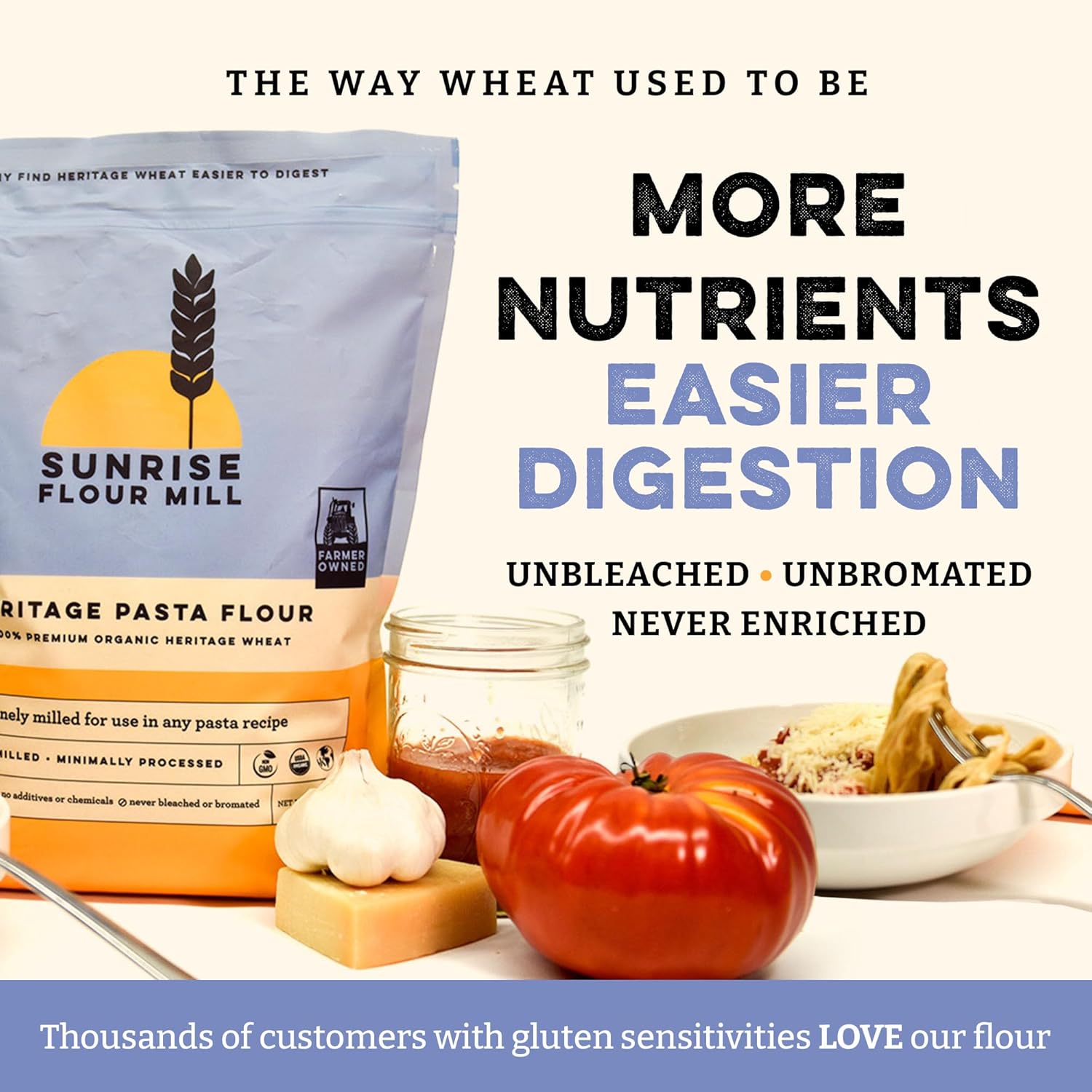 Sunrise Flour Mill USDA Organic Heritage Pasta Flour - 2 lbs | Milled from Hard Red Wheat | Easier to Digest with Less Bloating | No Bleaching or Bromating | Zero Additives
