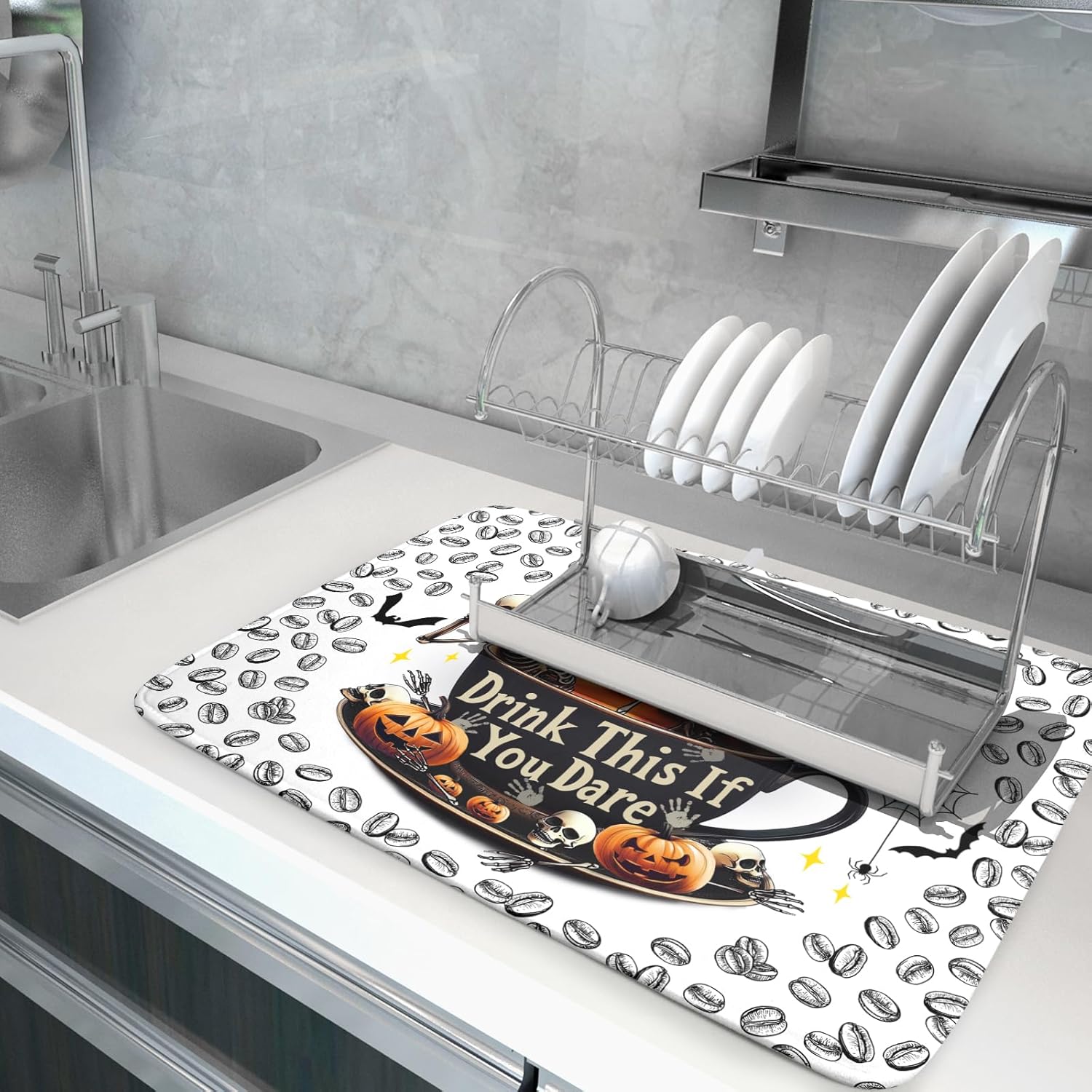 Skull Dead Coffee Mat Funny Dish Drying Pad for Kitchen Counter Absorbent Coffee Bar Accessories 18 X 24 Inch