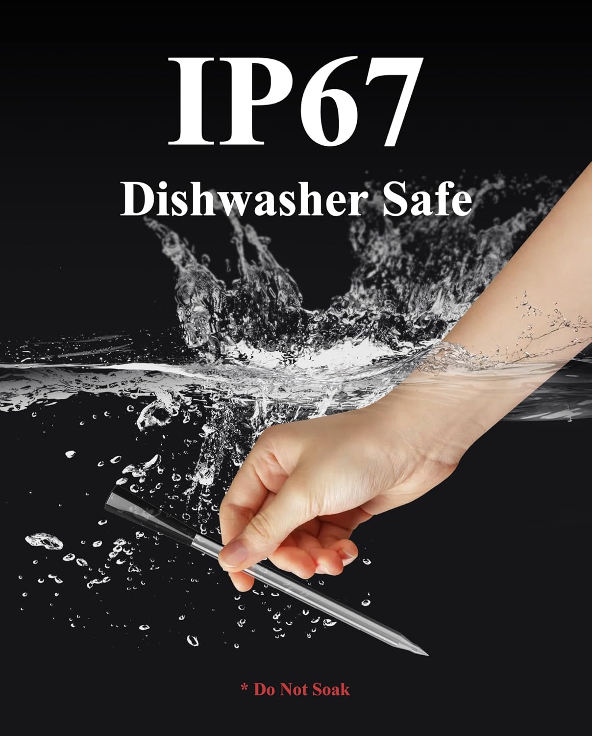 - Dishwasher Safe & Waterproof: The wireless meat thermometer probe is IP67 waterproof. Safely clean them in the dishwasher after use for convenience