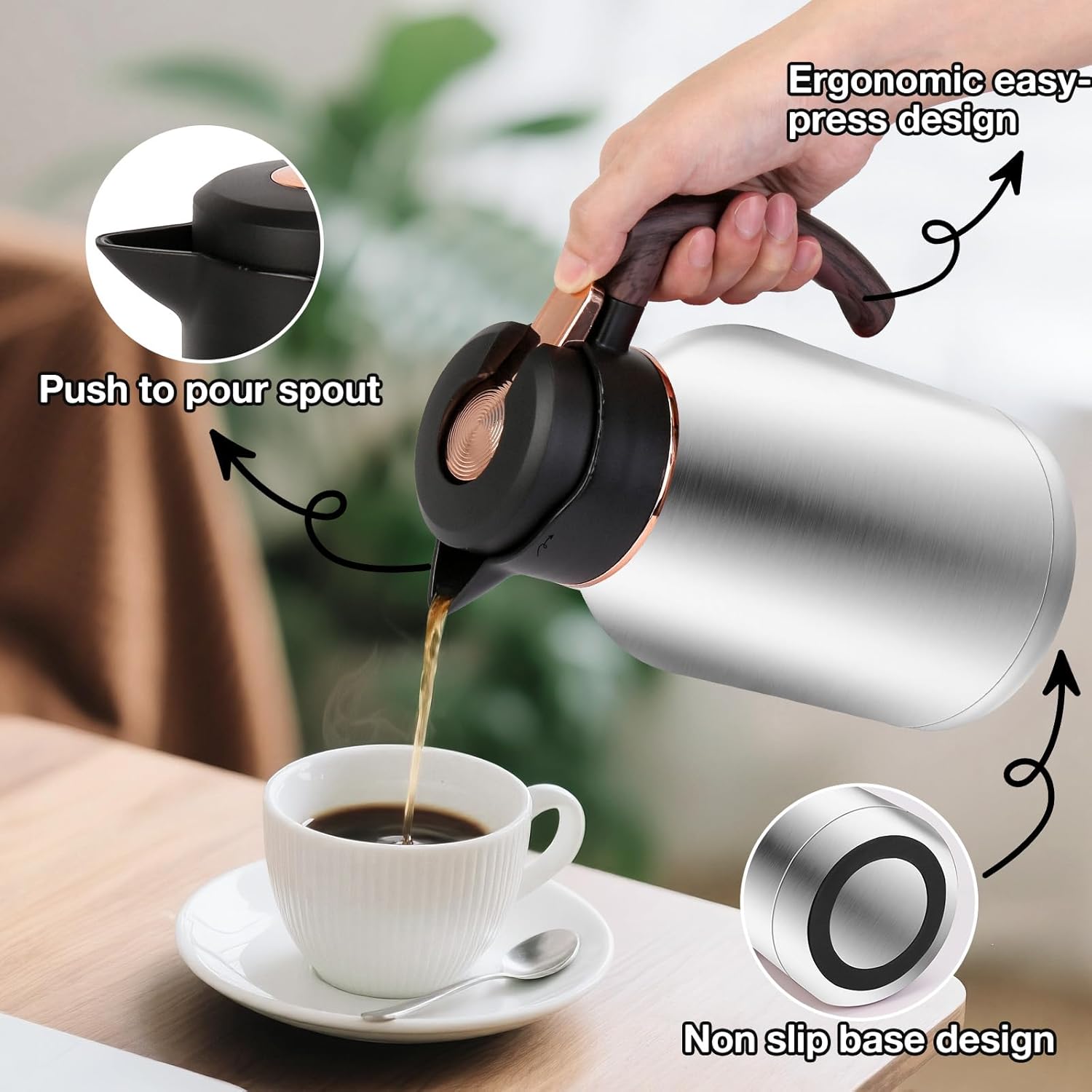 - Superior Temperature Retention: Crafted from thickened stainless steel, this carafe keeps hot drinks warm for approximately 10 hours. Brew a fresh cup of coffee in the morning and still enjoy its warmth in the afternoon. For cold beverages, it maintains a refreshing chill for up to 18 hours, making it an ideal choice for long, hot summer days or outdoor activities.