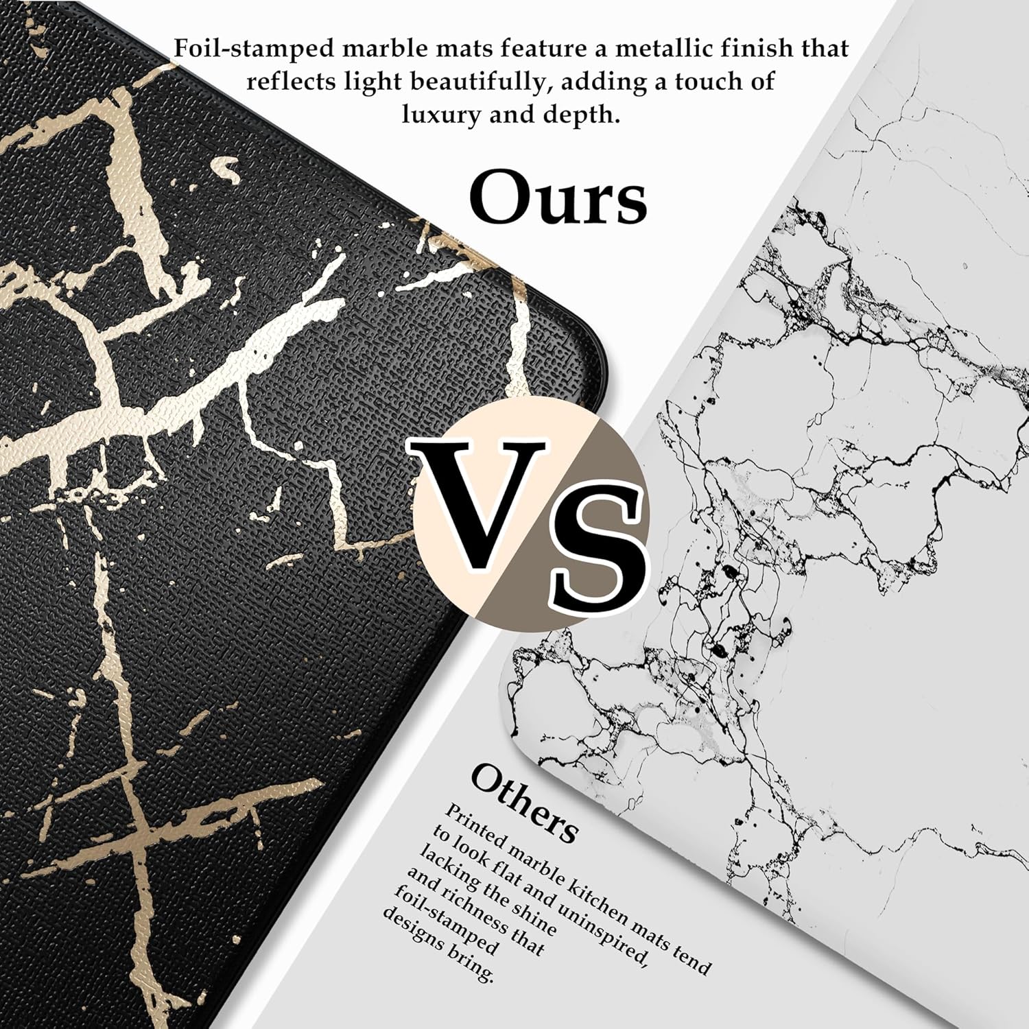 - Foil Stamped Marble Mats: Elegant marble pattern with gold foil finish, foil stamping creates refined texture and dazzling shine vs ordinary prints, crafted with waterproof, easy-to-clean leather. Sizes: 17.3"x28"+17.3"x47" or 17.3"x28"+17.3"x59"