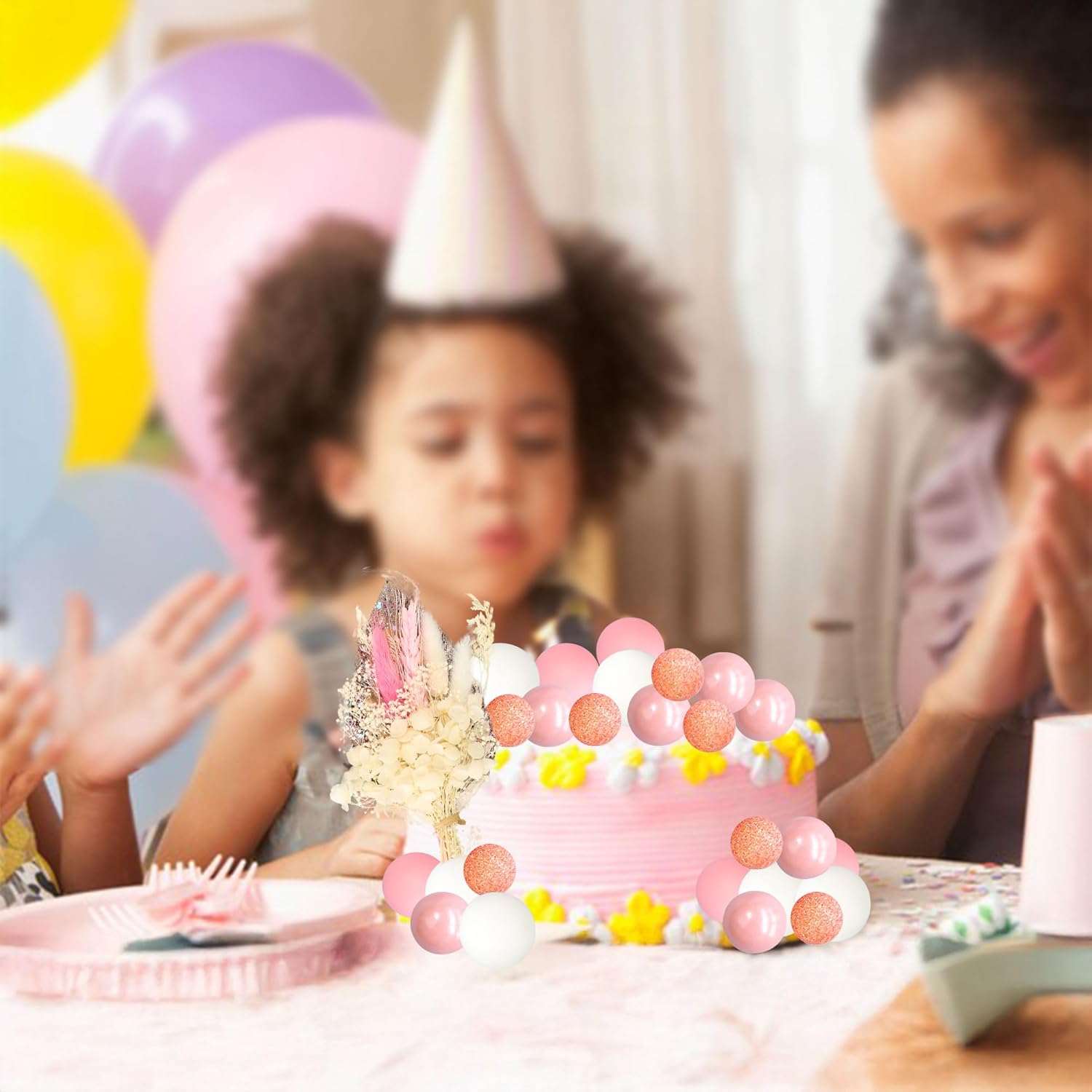 Gyufise 21 Pack Flower Boho Cake Topper Ball Cake Decorations Palm Leaves Plants Cake Decor for Girl Bohemian Princess Theme Wedding Baby Shower Birthday Party Supplies Pink White