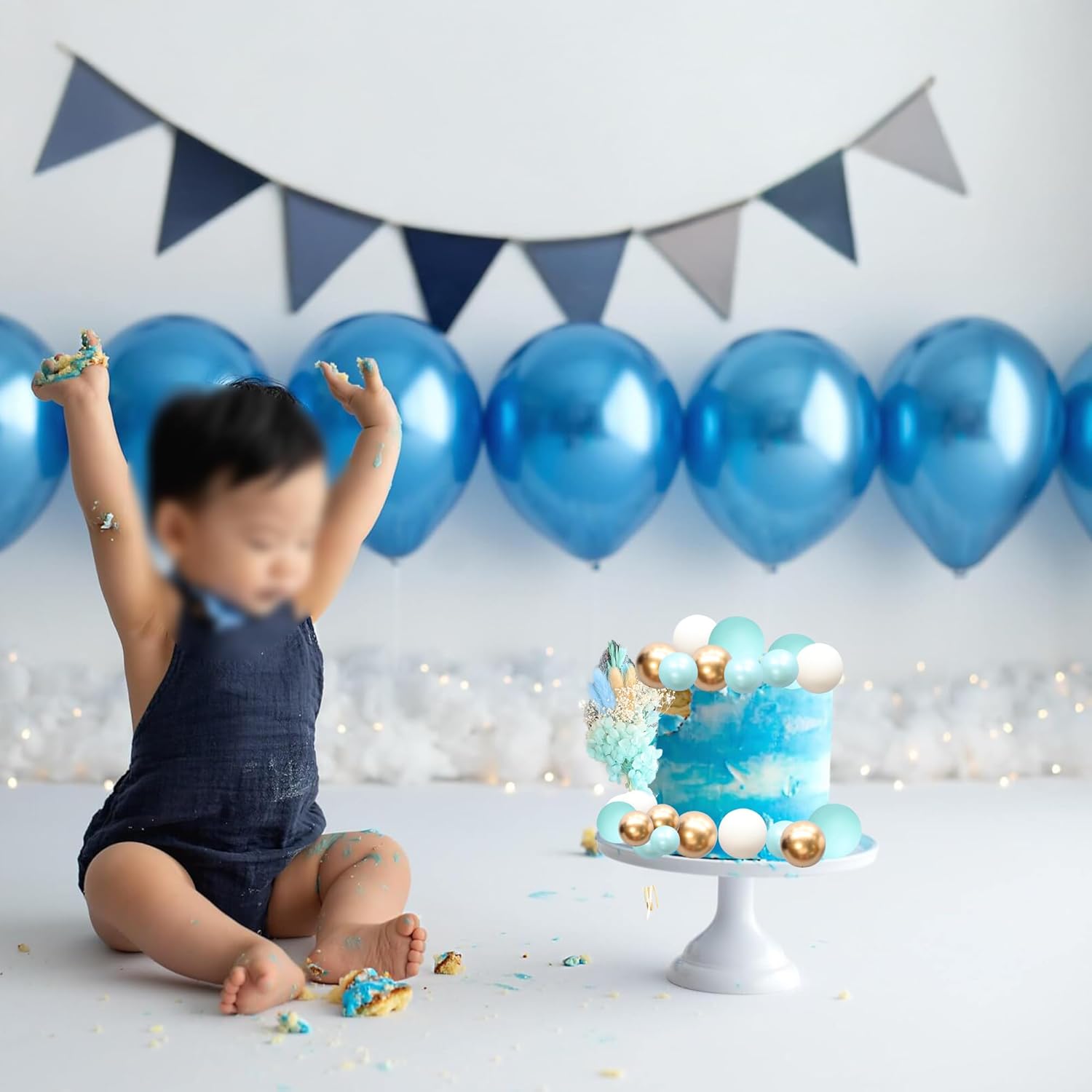 Gyufise 21 Pack Flower Boho Cake Topper Ball Cake Decorations Palm Leaves Plants Cake Decor for Girl Bohemian Princess Theme Wedding Baby Shower Birthday Party Supplies Blue