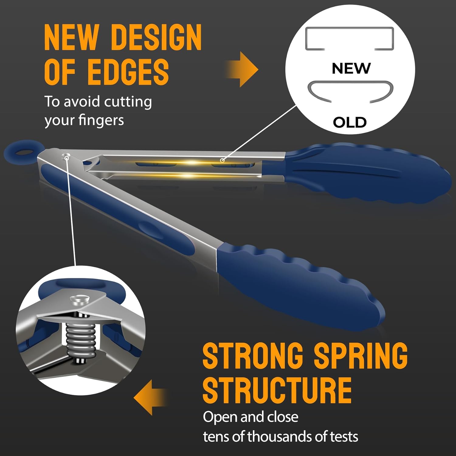 - HEAT RESISTANT ERGONOMIC HANDLES: The cooking tongs' handle is cushioned with silicon, good for thumb rest and ensures good grip and control. The Food Grade silicon tongs tip is heat resistance 600°F and less prone to scratch the pan. Easy to rinse, dishwasher safe.