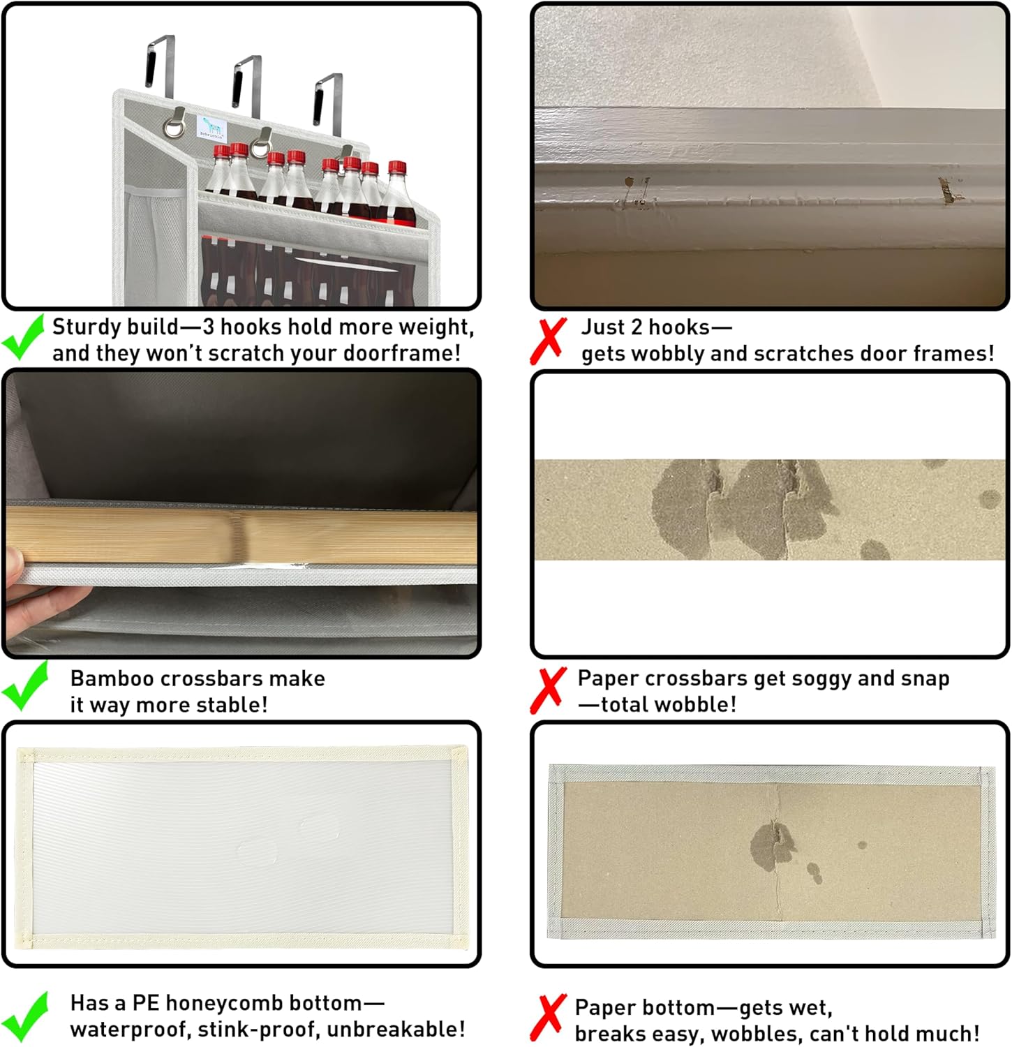 - 【Solid Bamboo Panels – No Cheap Plastic!】 door organizer hanging, Eco-Friendly & Sturdy – Unlike weak plastic/paper boards that snap, our real bamboo panels are waterproof, washable, and won’t warp or smell. Smooth, Splinter-Free Finish – Safe for kids’ nursery & delicate items. over the door organizer nursery.