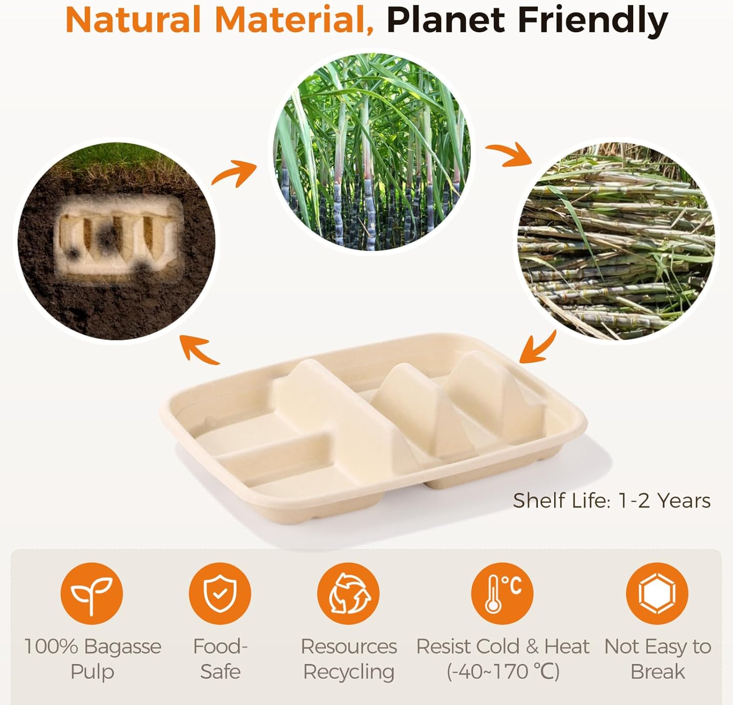 - Sturdy Structure: Made from molded plant fiber with a rigid form; tray won't bend or collapse when loaded with tacos and sides; holds up well to saucy, greasy, or heavy items; keeps food contained and secure during handling or movement