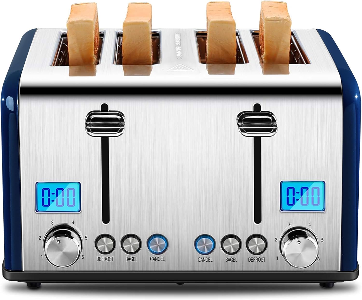 - LED Display Countdown Timer: Roter Mond toaster 4 slice equipped with LED countdown timer display, which exactly indicates the remaining time until your toast is ready. It helps you enjoy a more efficient toasting without waiting all the time