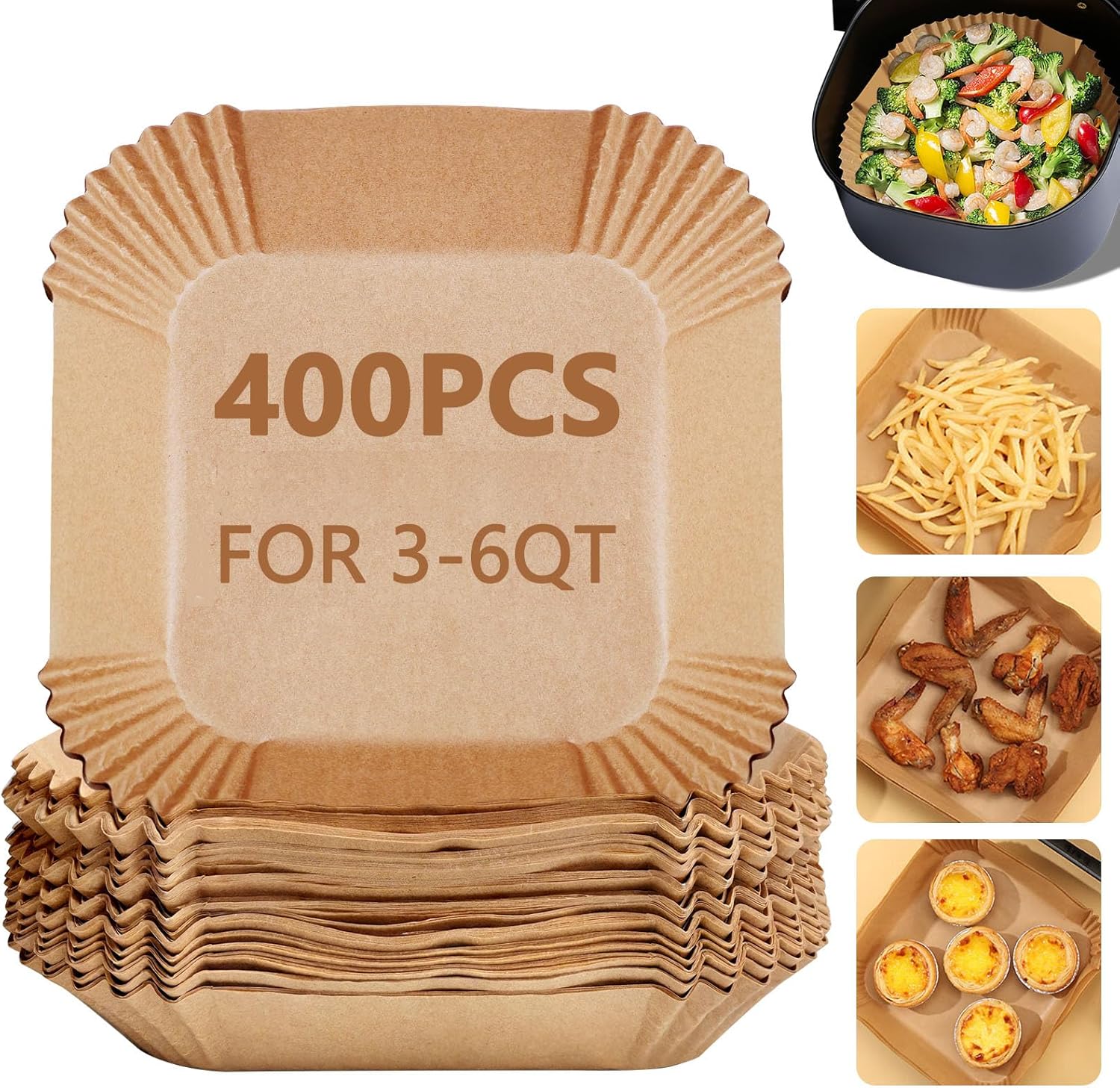 - 【Heat-Resistant & Durable】 Made from high-quality, unbleached parchment paper, these liners are heat-resistant up to 450°F (232°C), making them safe for air frying, baking, and roasting without tearing or burning.
